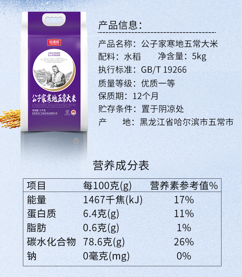 裕道府公子家寒地五常大米5kg 单位:袋 紫色