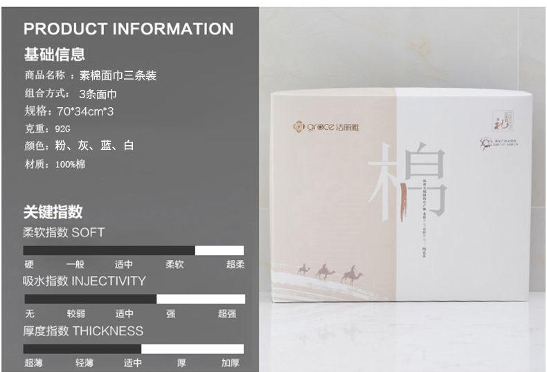 洁丽雅素棉三条毛巾礼盒 70*34cm 随机