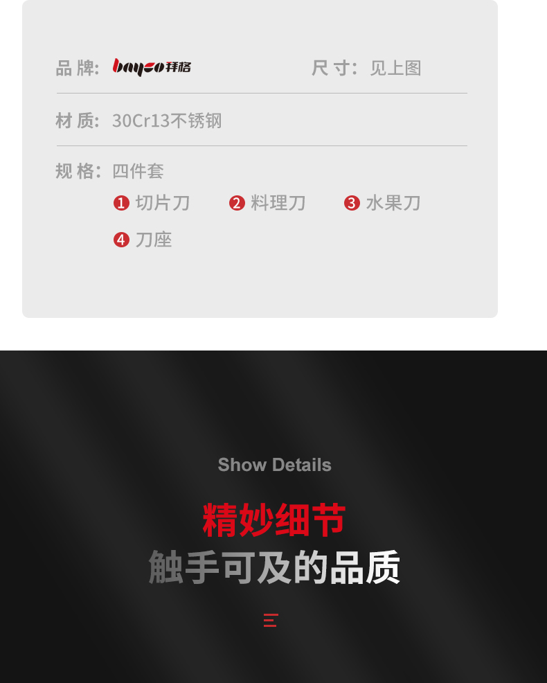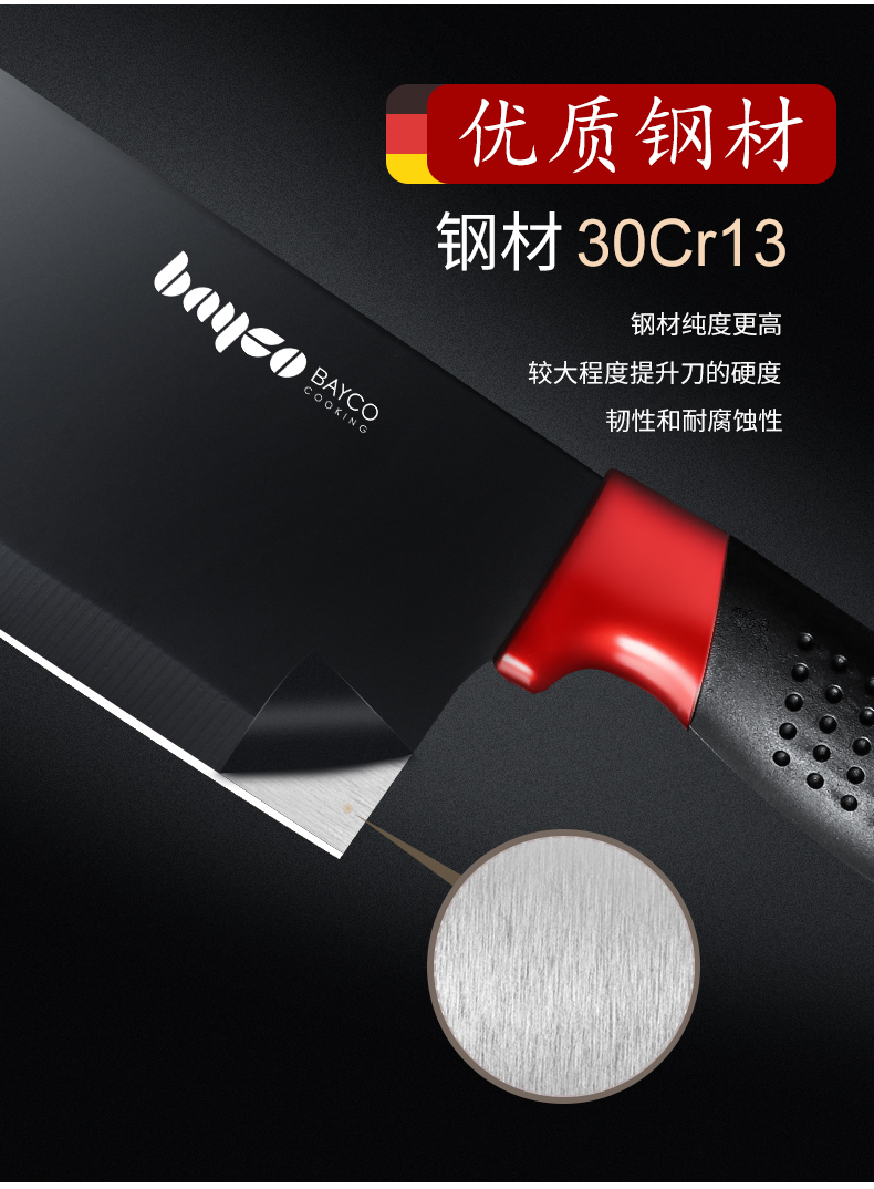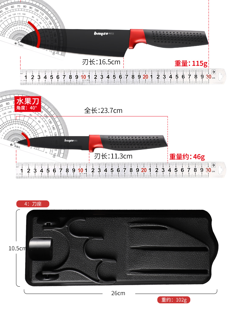 拜格(BAYCO)孔纹柄喷漆黑色刀具折叠刀座 4件套【BD3263】 曜石黑