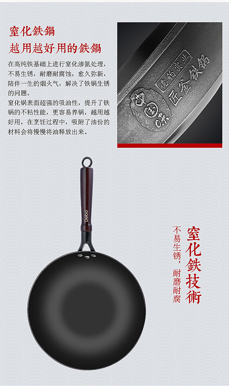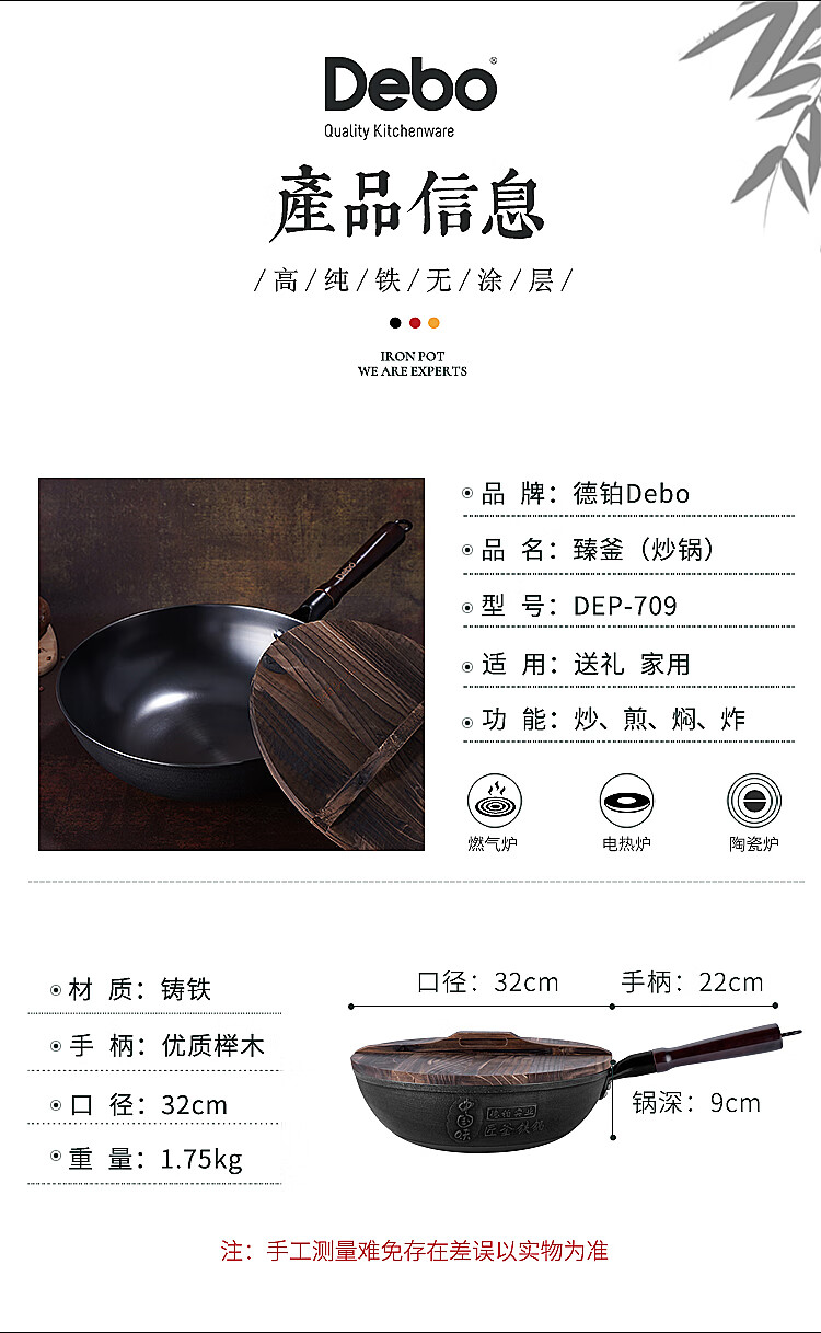 德铂(Debo) 炒锅 无涂层 DEP-709 32cm 黑色(单位:个)