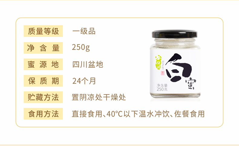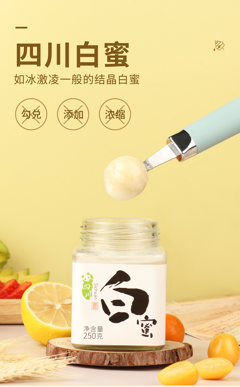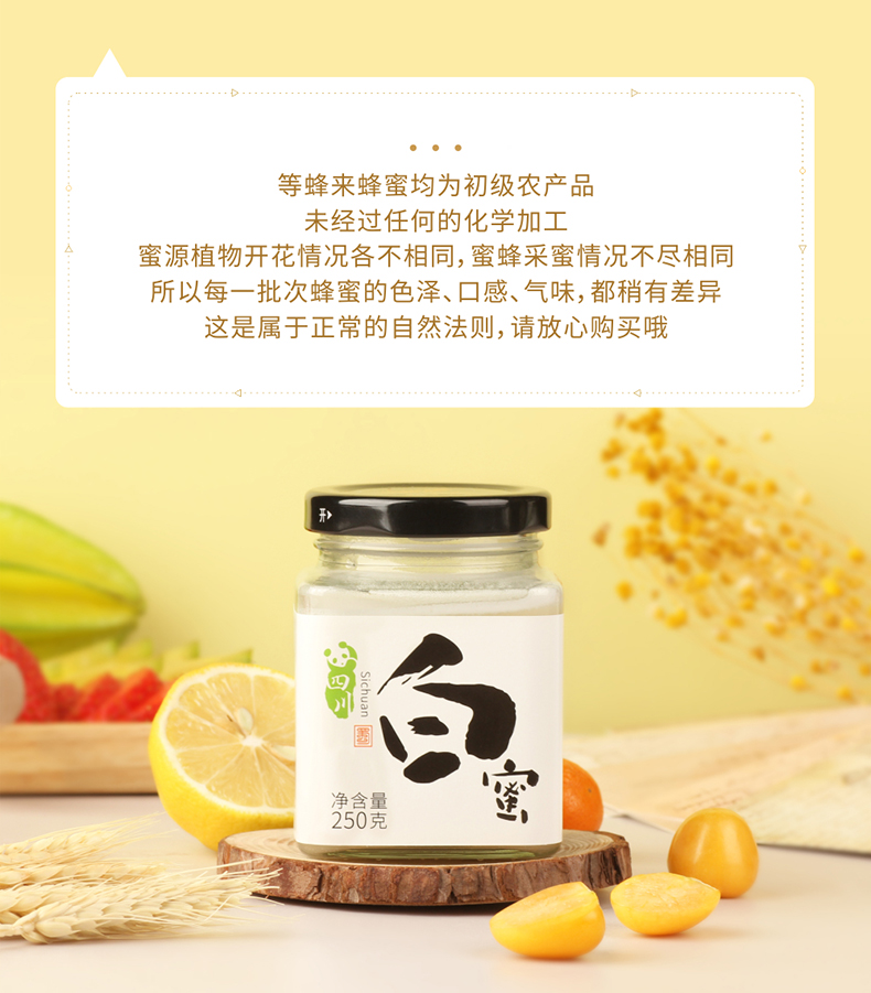 等蜂来 蜂蜜农家自产新鲜结晶原蜜 四川白蜜250g/瓶