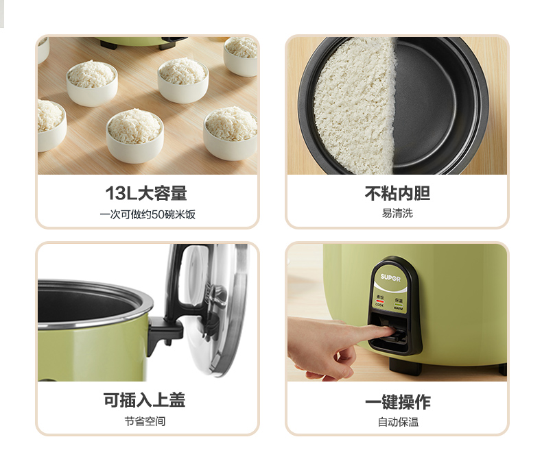 苏泊尔(SUPOR)SF130B6商用电饭锅 特大号多功能不粘食堂饭店蒸饭锅13L单位:个 绿色