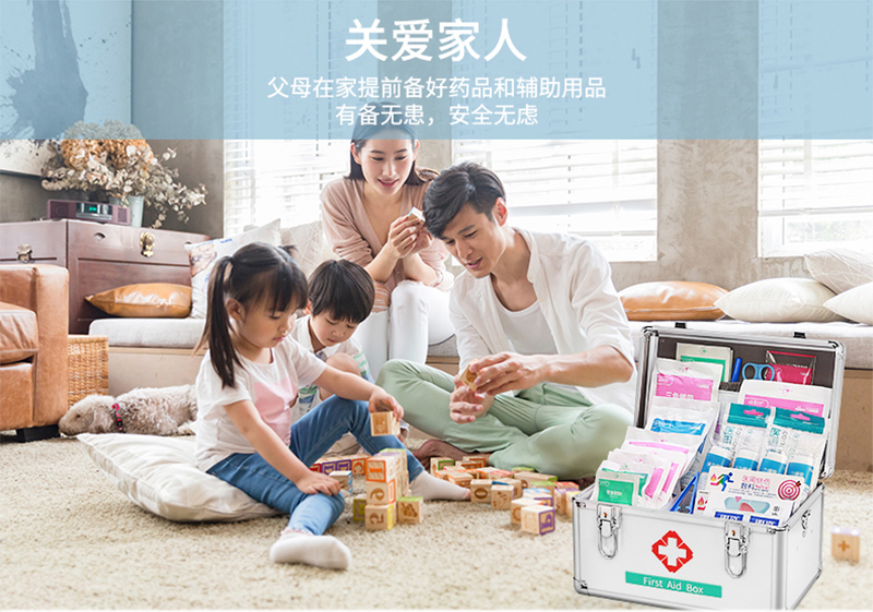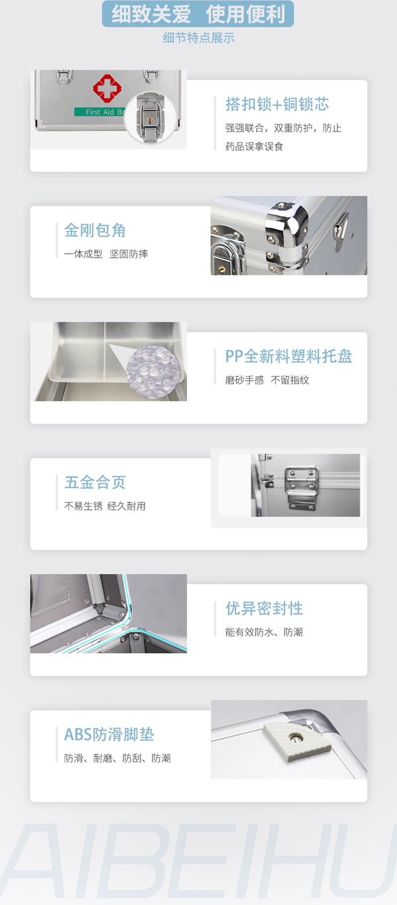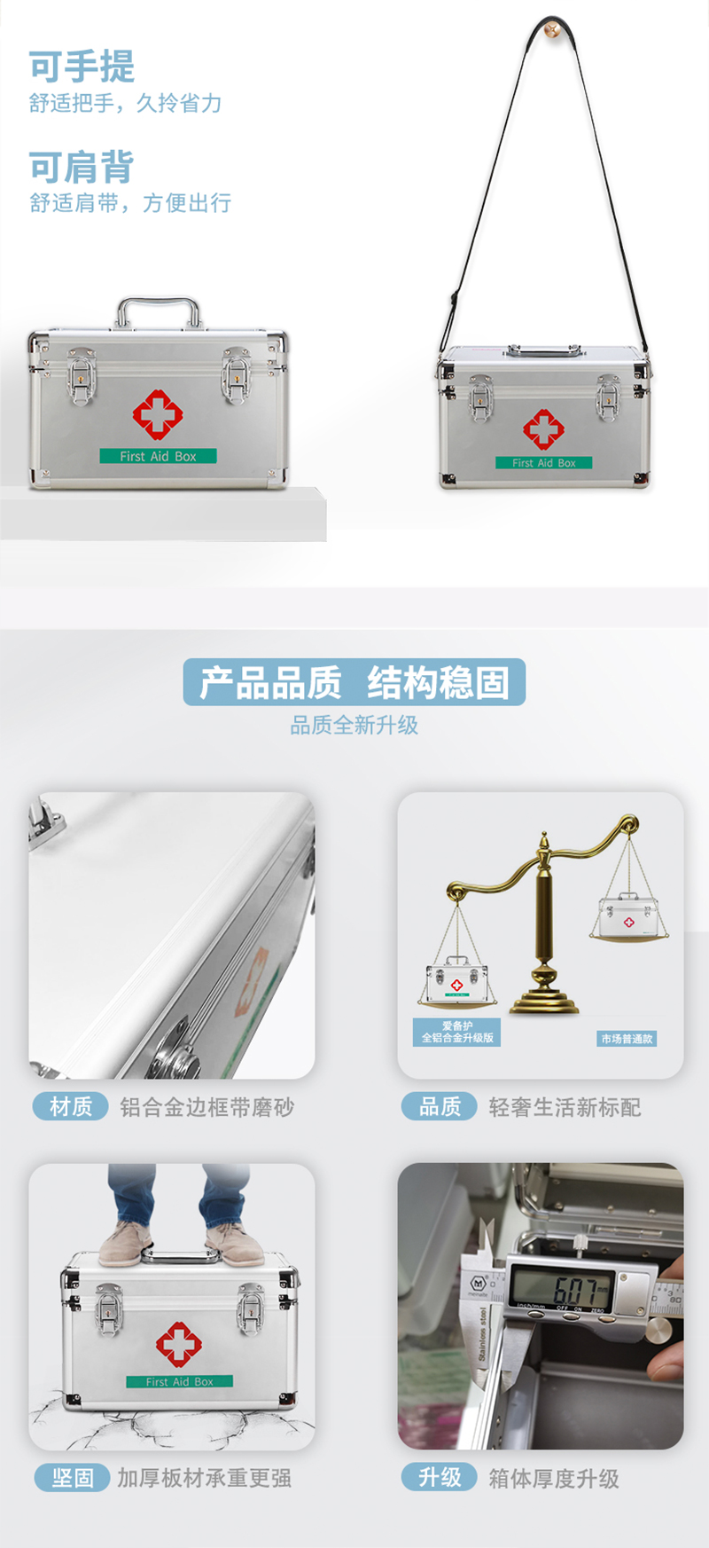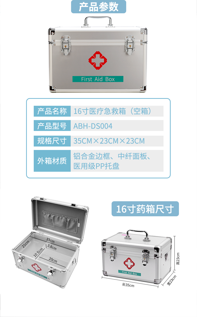 爱备护 收纳箱 16寸医药箱 铝合金手提 ABH-DS004(空箱) 35cm×23cm×23cm 金属银 铝合金边框 银色