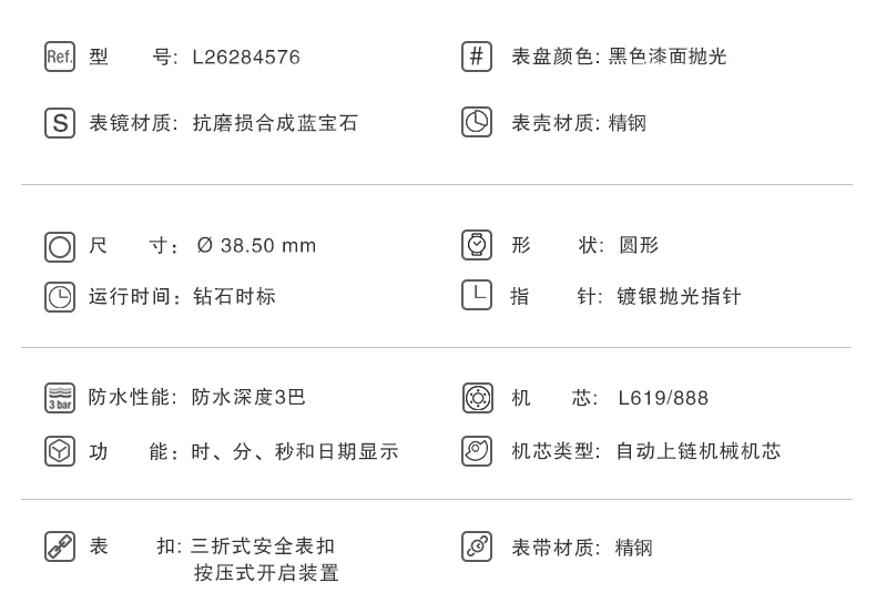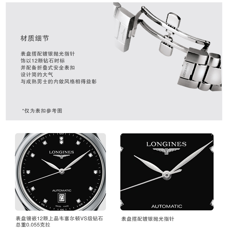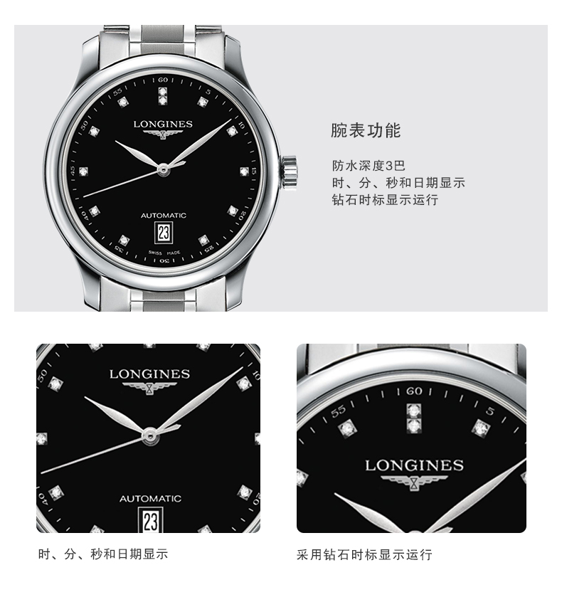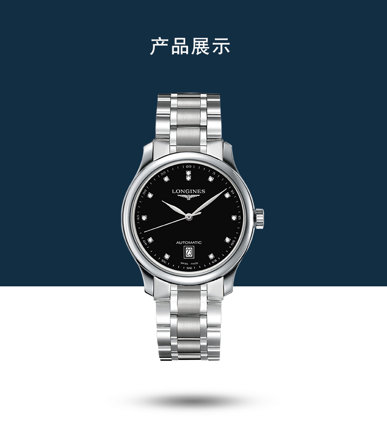 Longines浪琴 名匠系列机械表镶钻钢链男表 L2.628.4.57.6(单位:块) 黑色