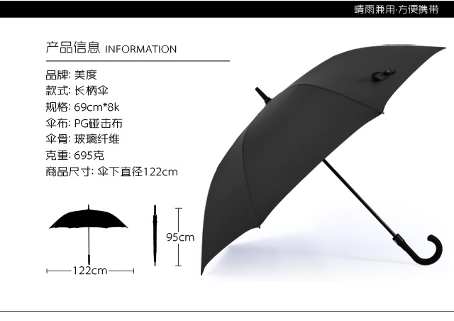 美度(MAYDU) M1126 69cm*8k 晴雨伞 黑色(单位:把)