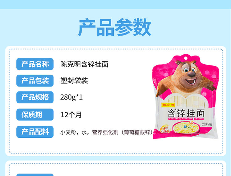 陈克明 儿童鸡蛋挂面 280g*5包 宝宝儿童营养面条 黄色