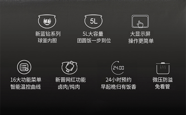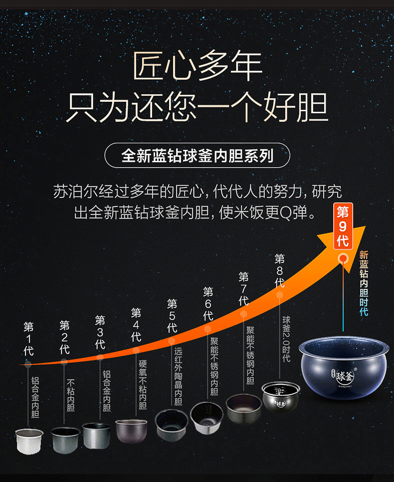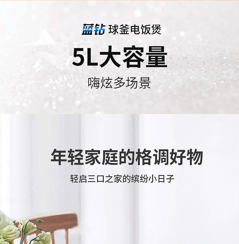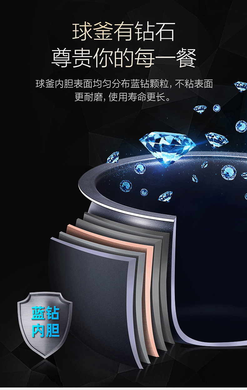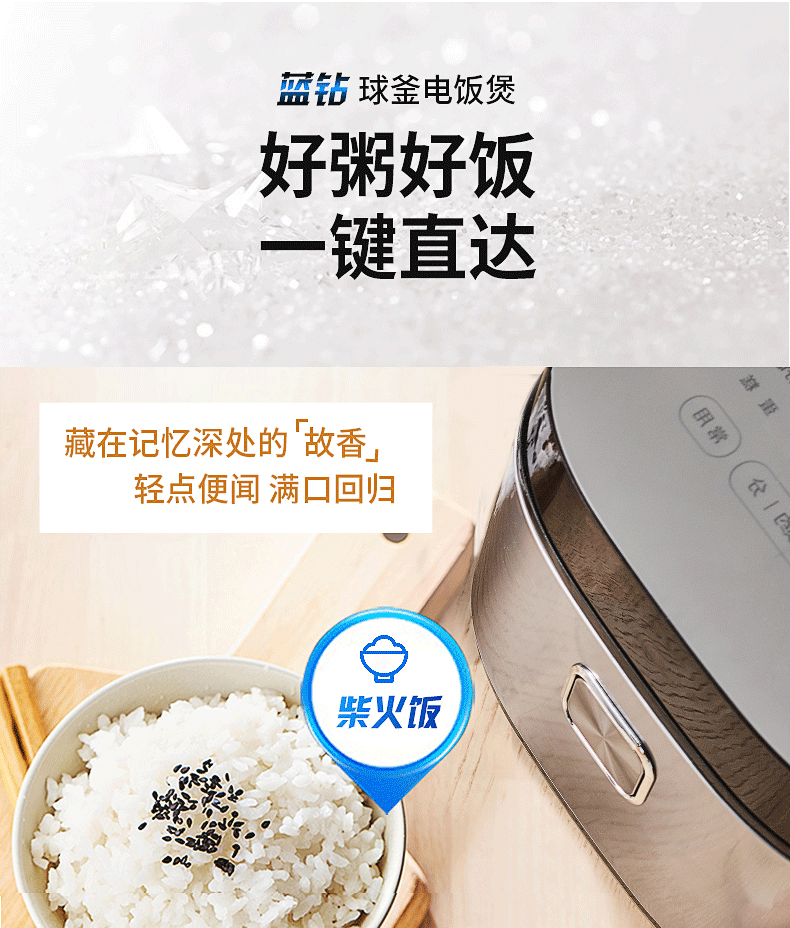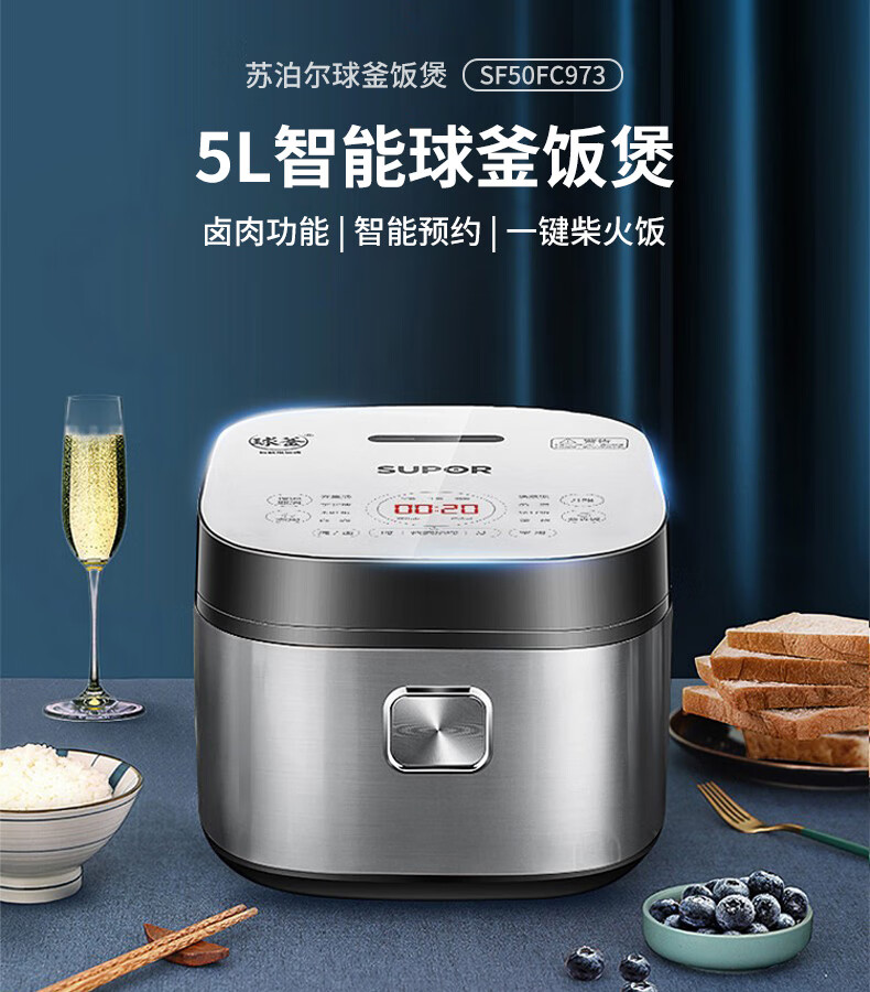 苏泊尔(SUPOR)电饭煲SF50FC973 电饭锅蓝钻球釜5L家用多功能智能电饭煲 单位:个 银色