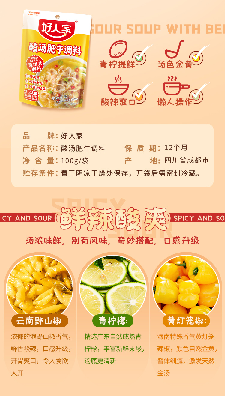 好人家酸汤肥牛调料(单位:包) 100g*3包