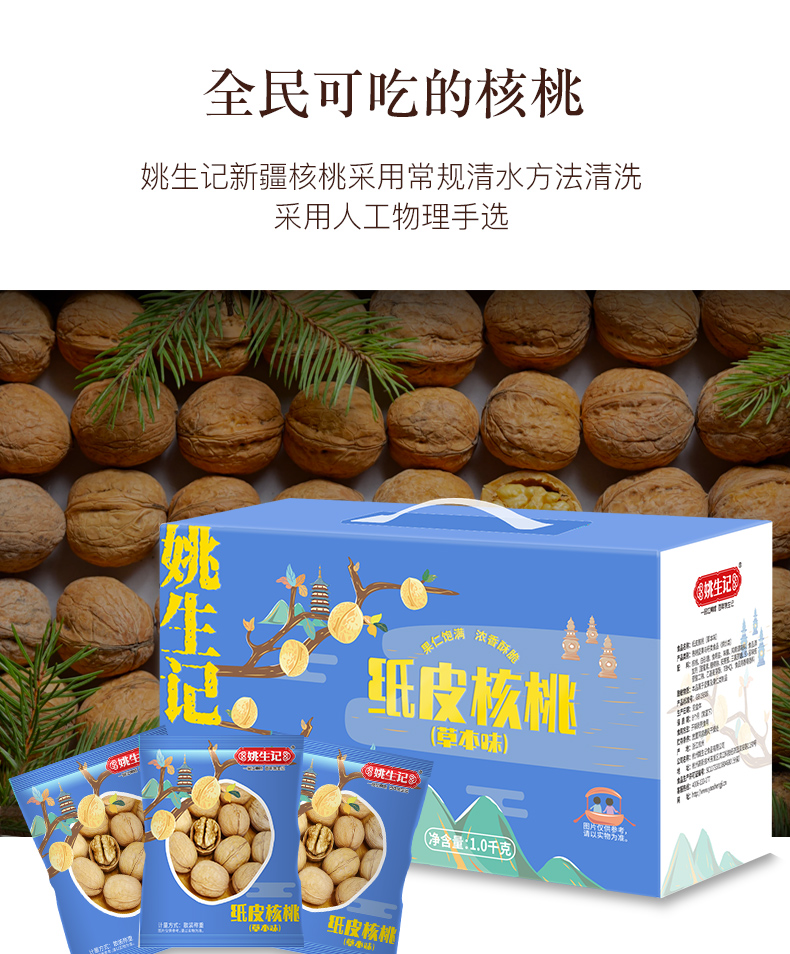 姚生记 纸皮核桃(草本味)1kg 1kg盒装