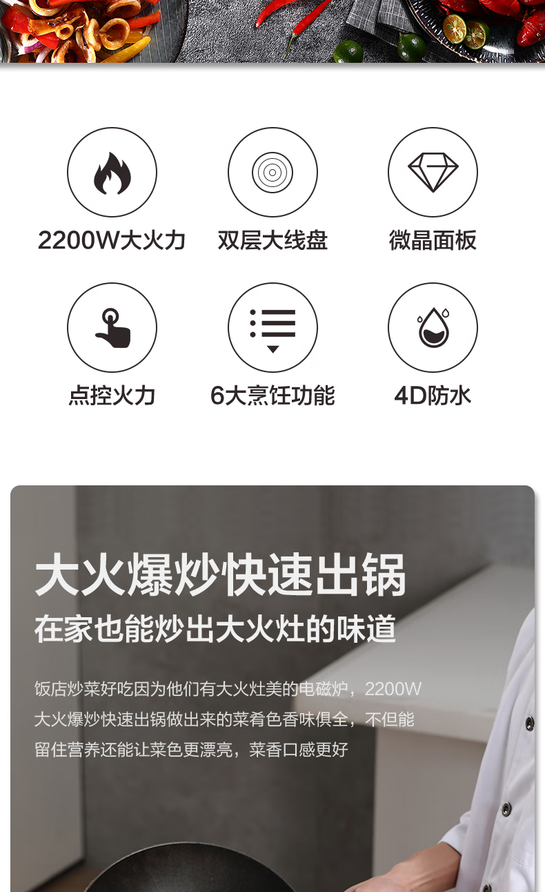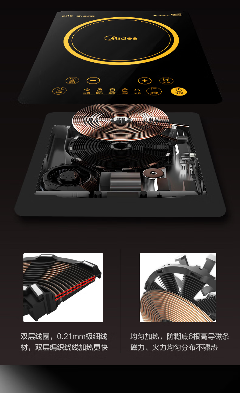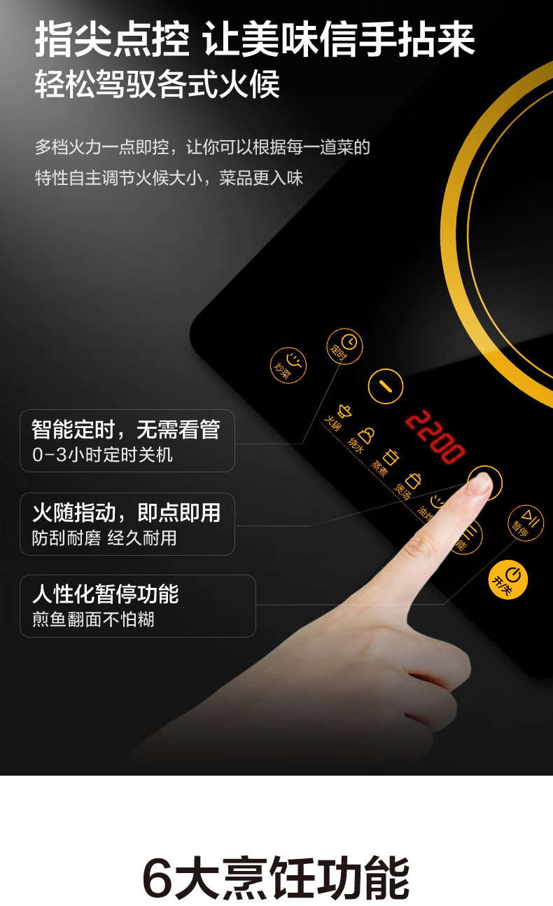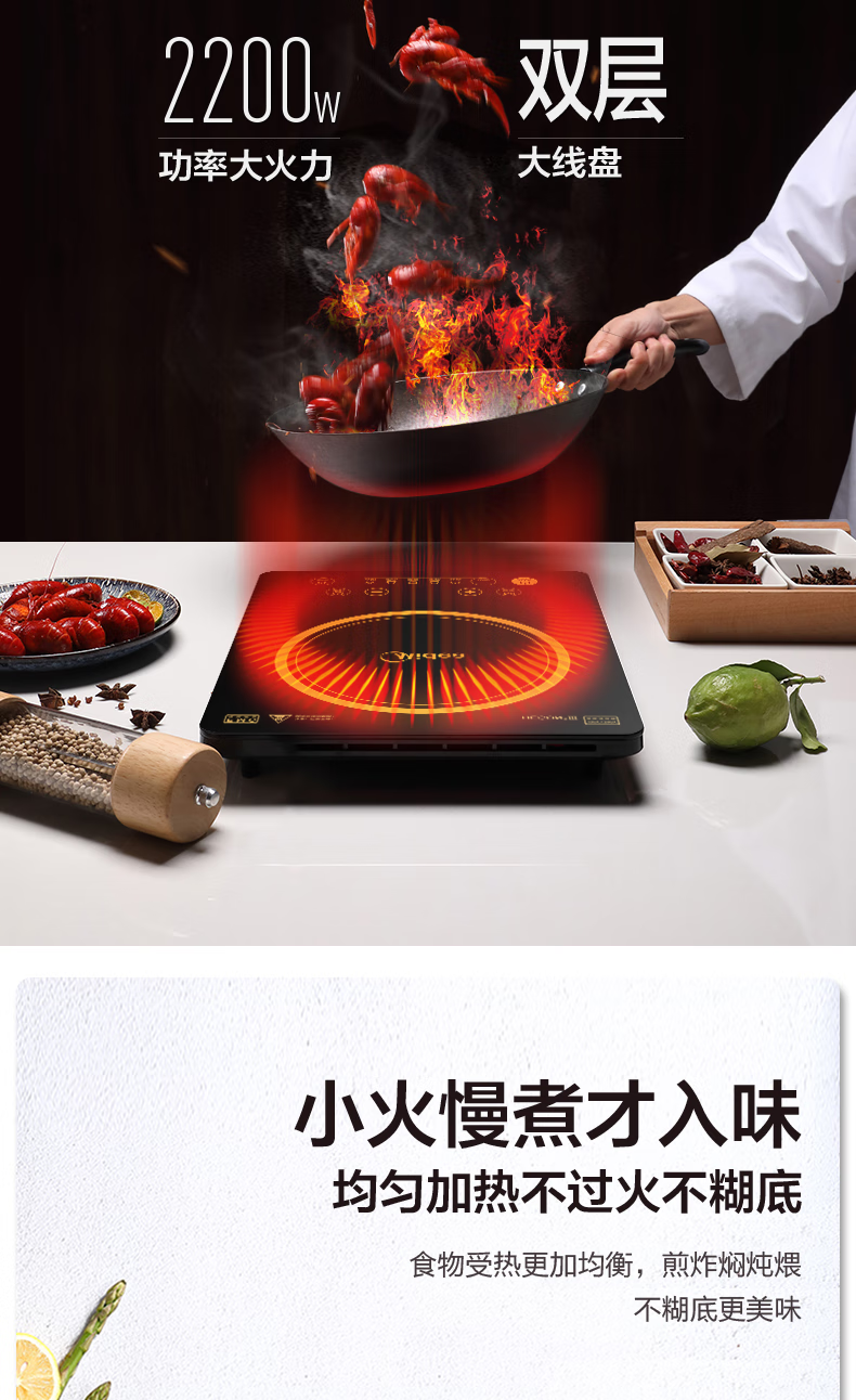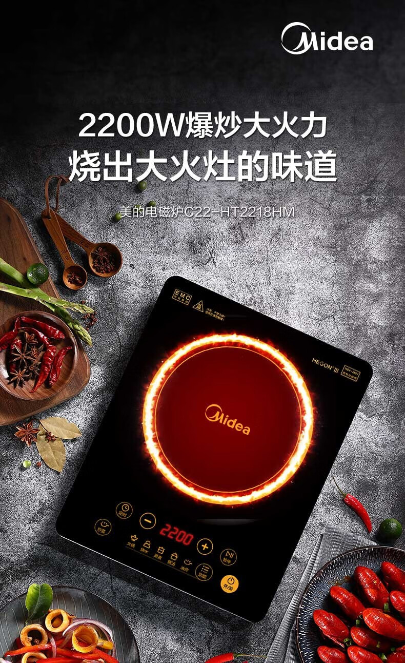 美的(Midea)电磁炉电磁灶 2200W功率 HT2218HM(单位:台) 黑色