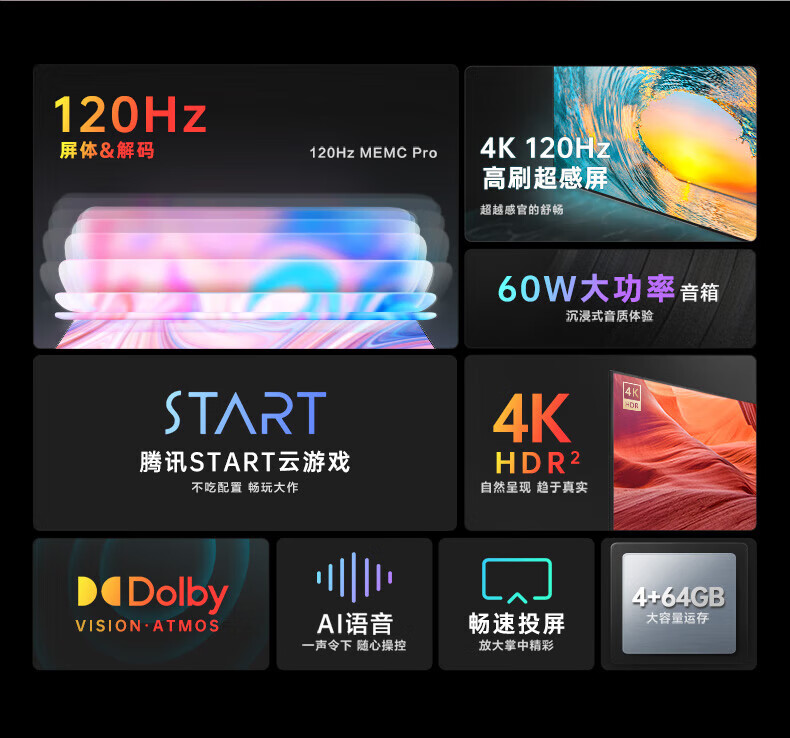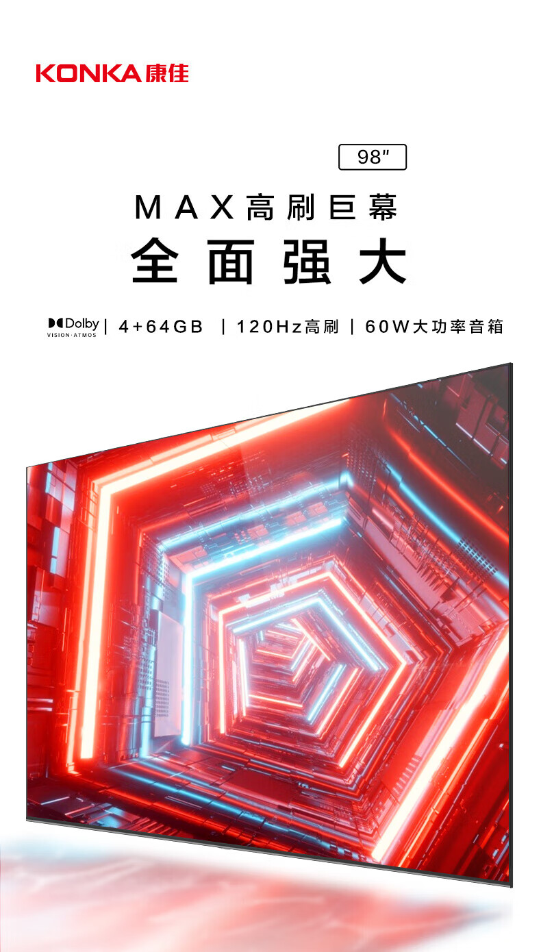 康佳(KONKA)电视 98C2 98英寸 120Hz高刷 4+64GB巨幕大屏 黑色 (单位:台) 黑色