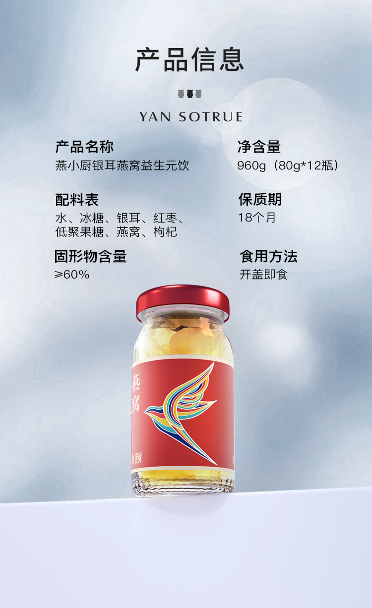 燕小厨银耳燕窝益生元饮 80g*12瓶 红色
