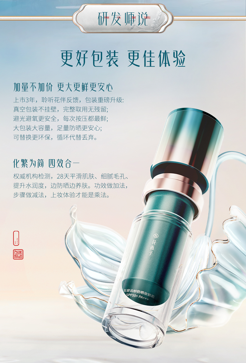 花西子 玉容云纱防晒妆前霜SPF50+PA+++ 防晒隔离提亮 35g 小黛伞(单位:瓶)
