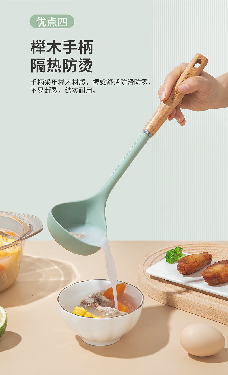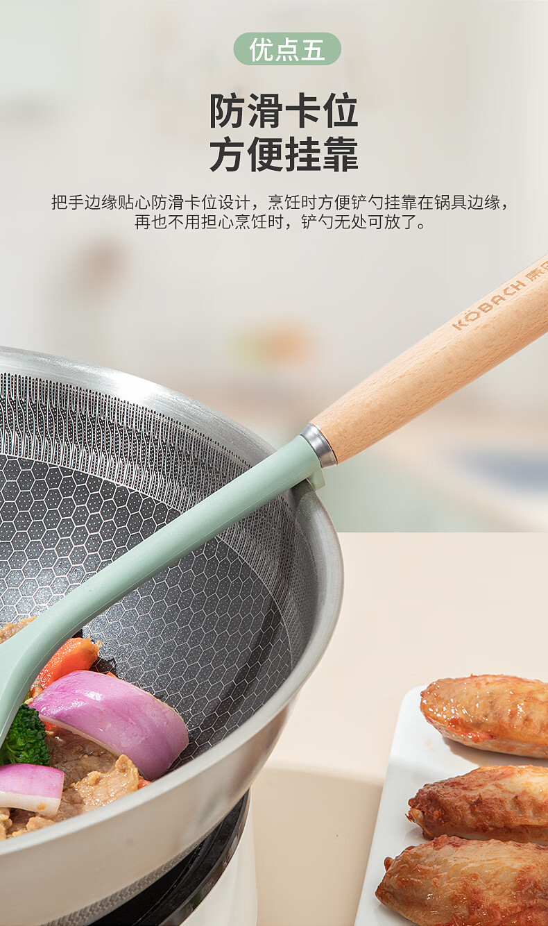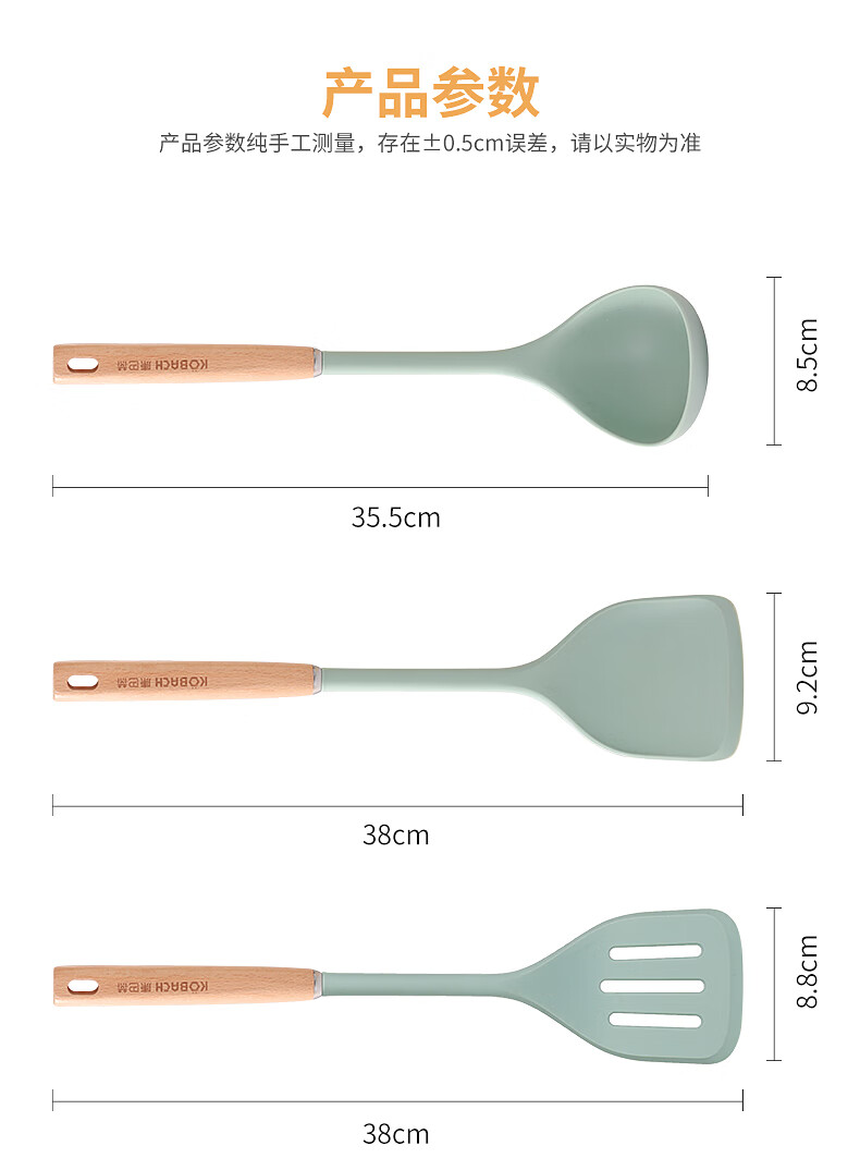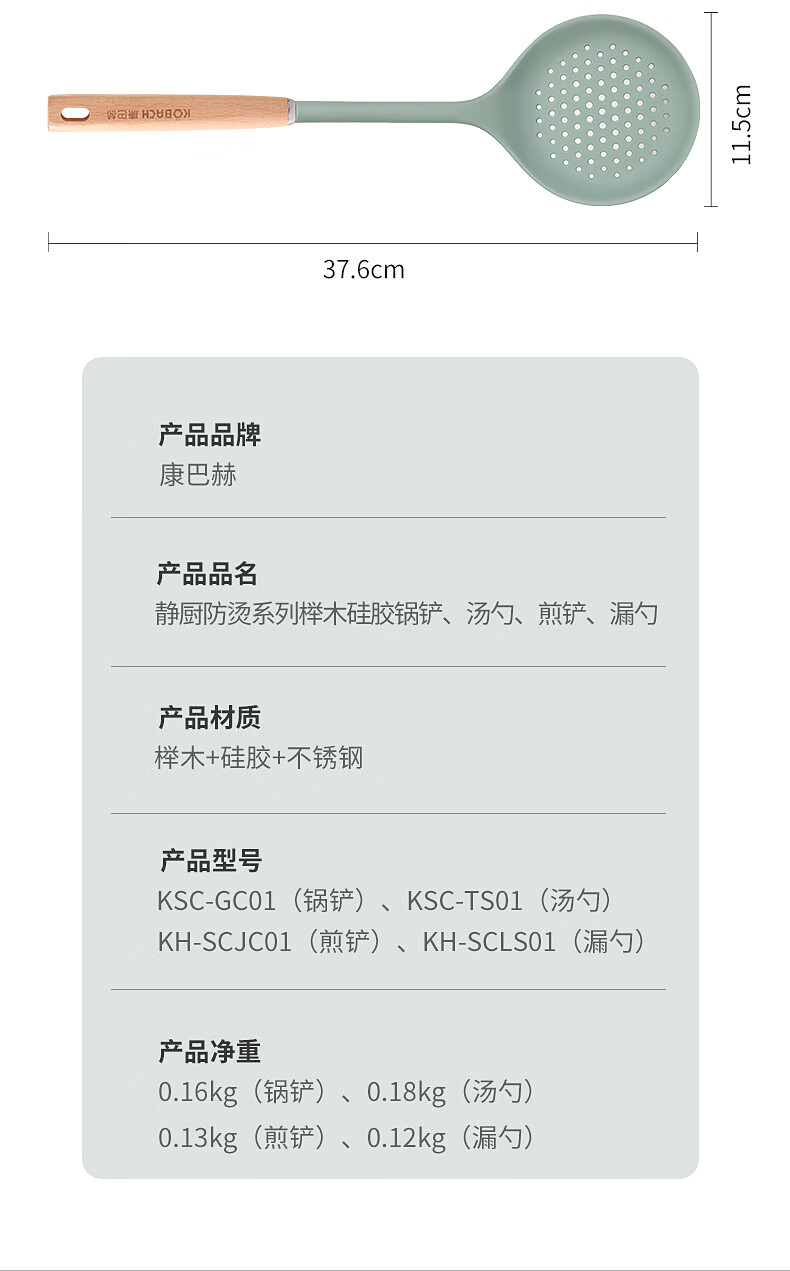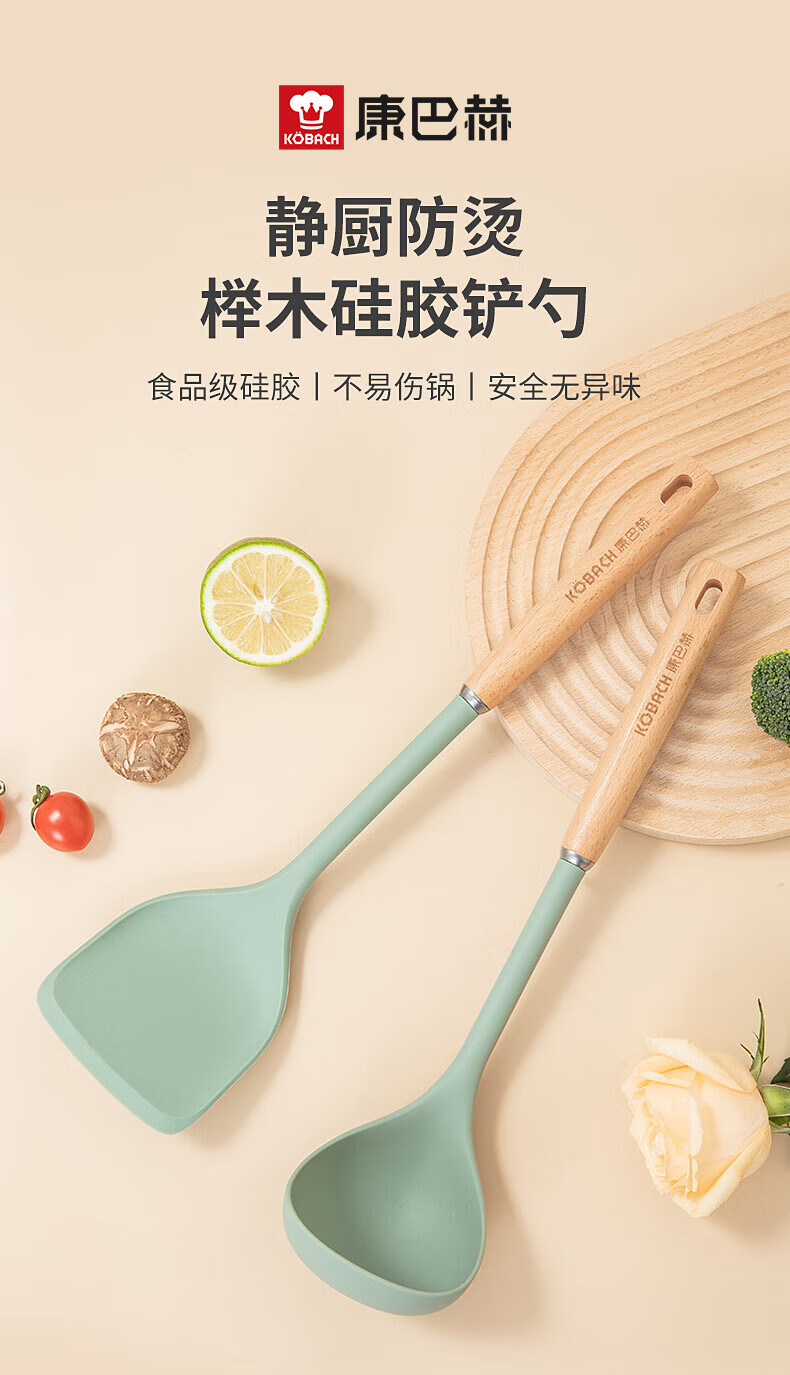 康巴赫 静厨防烫系列榉木硅胶锅铲 KSC-GC01 38*9.2cm 绿色(单位:个)