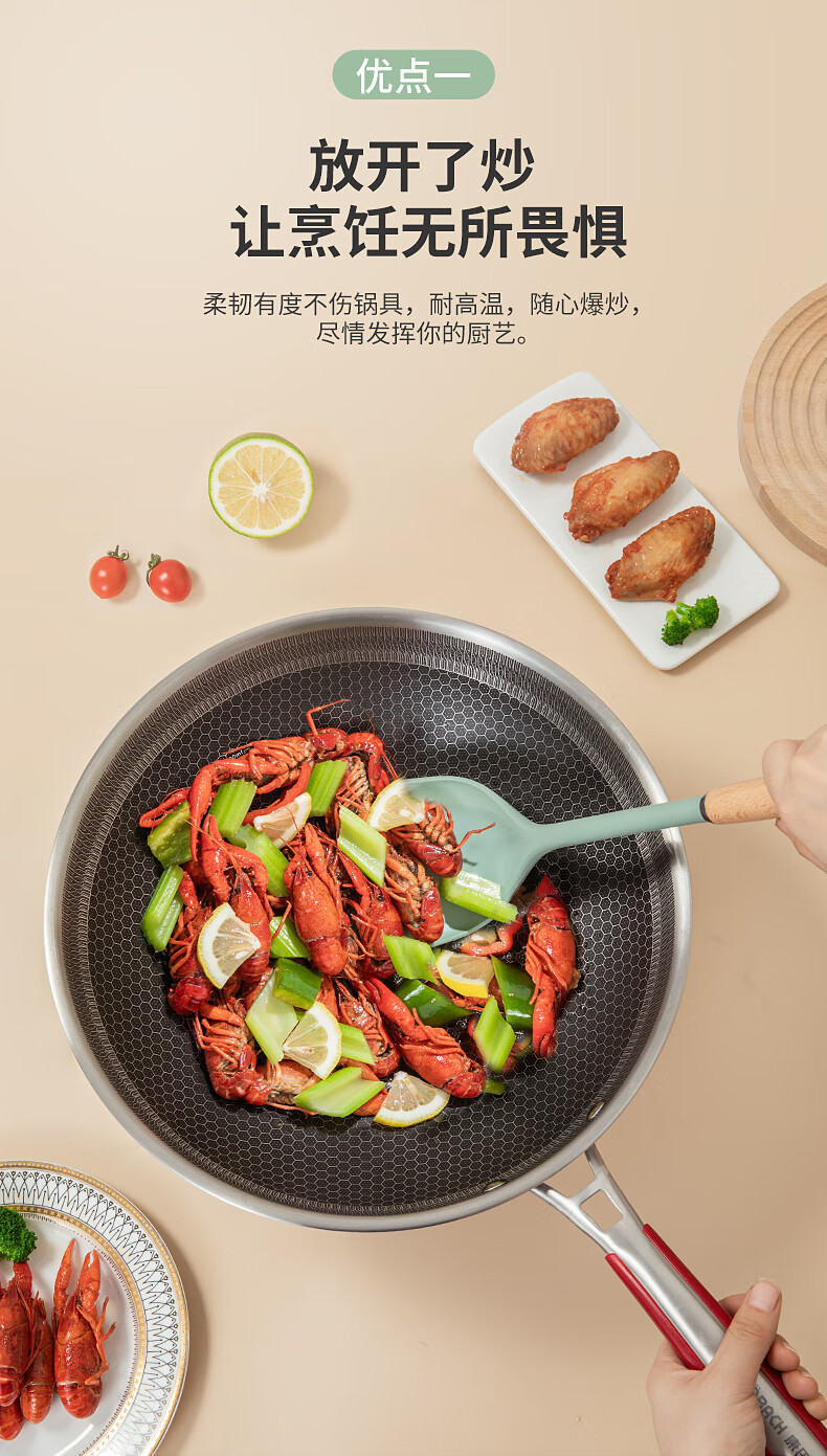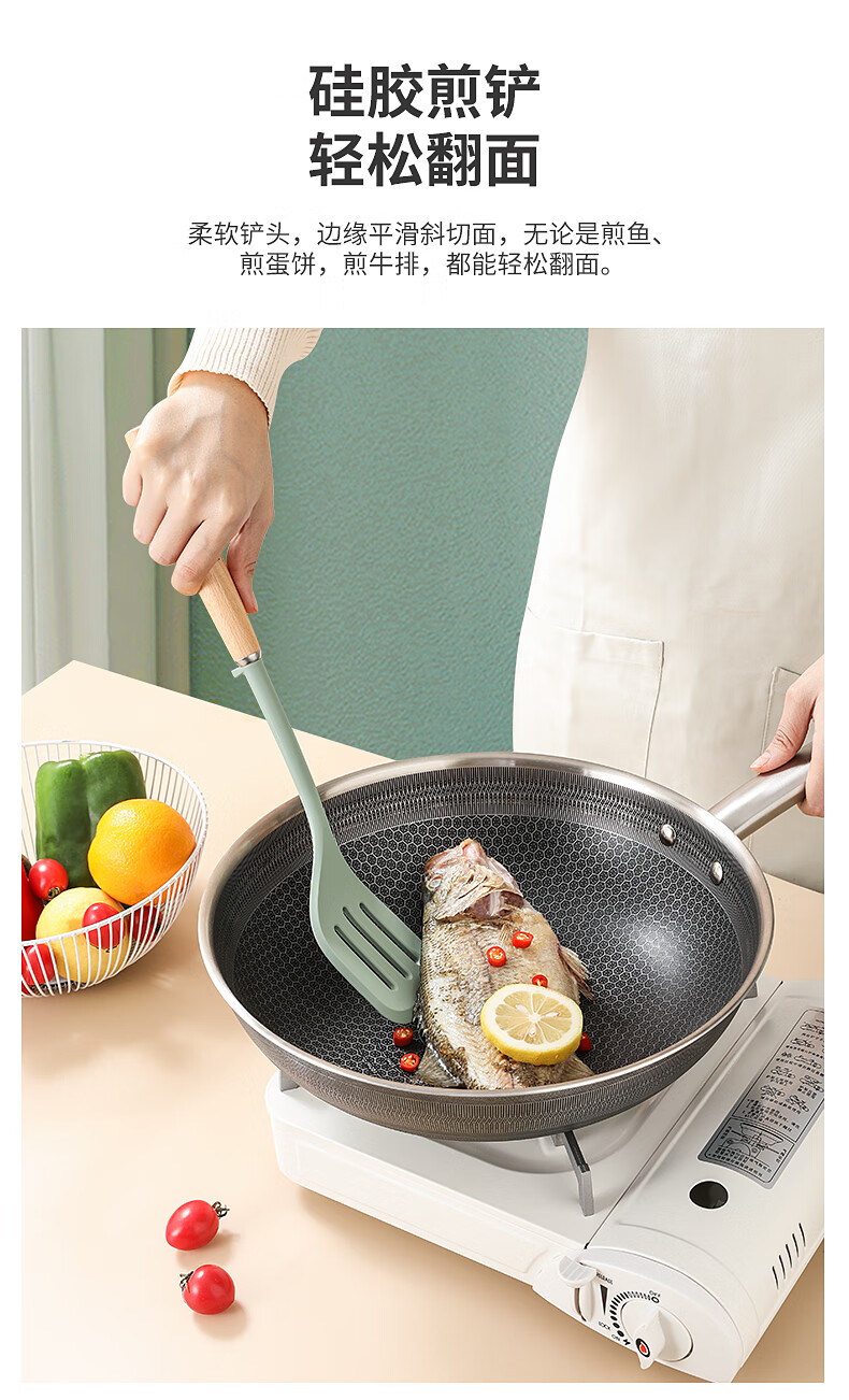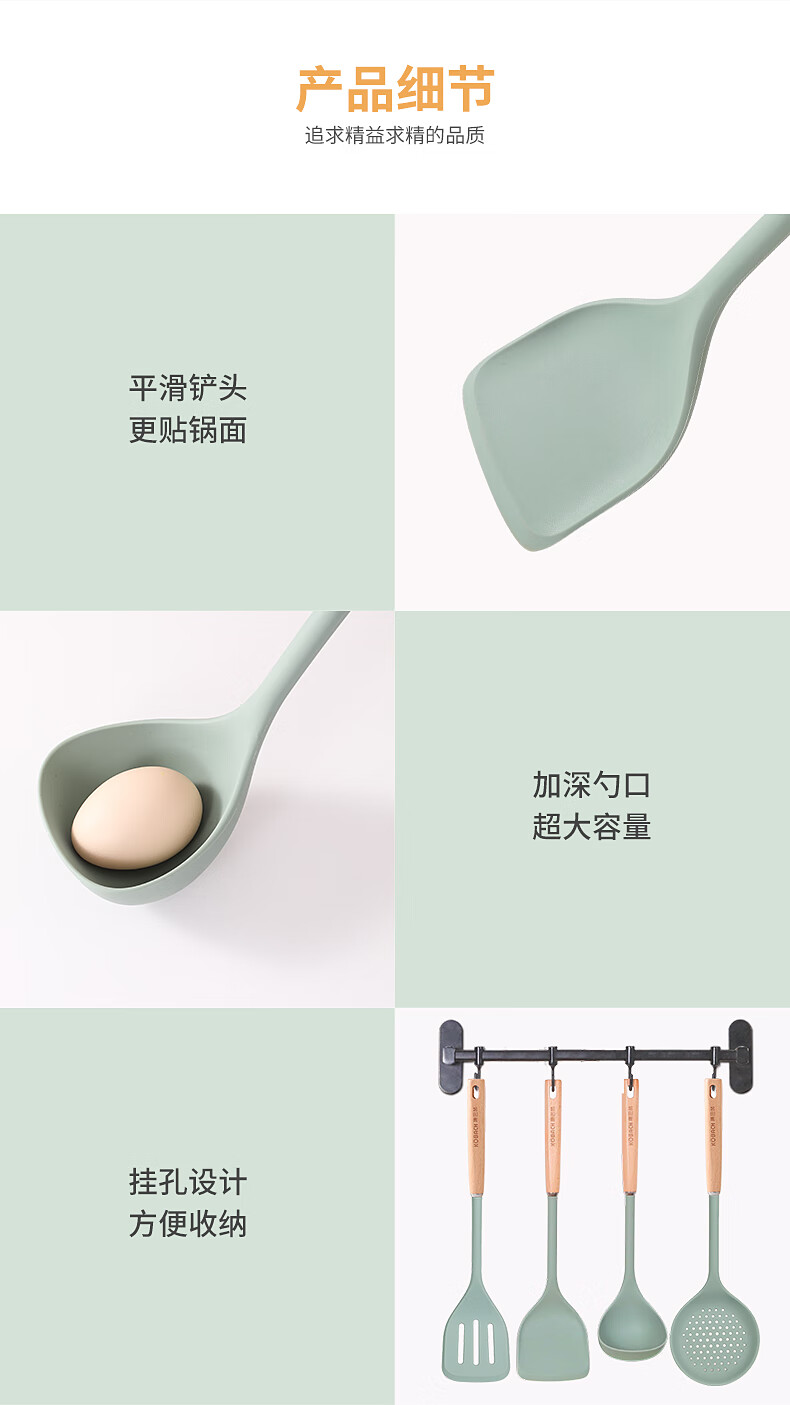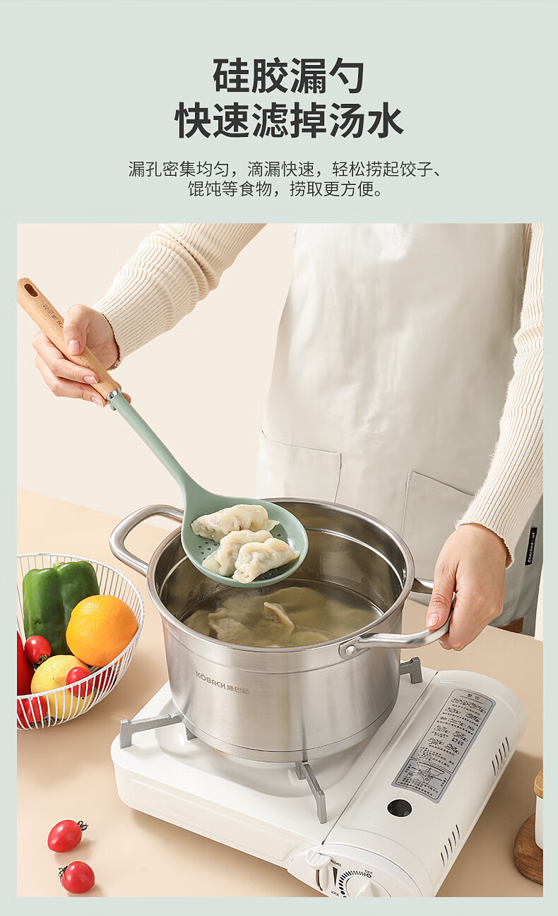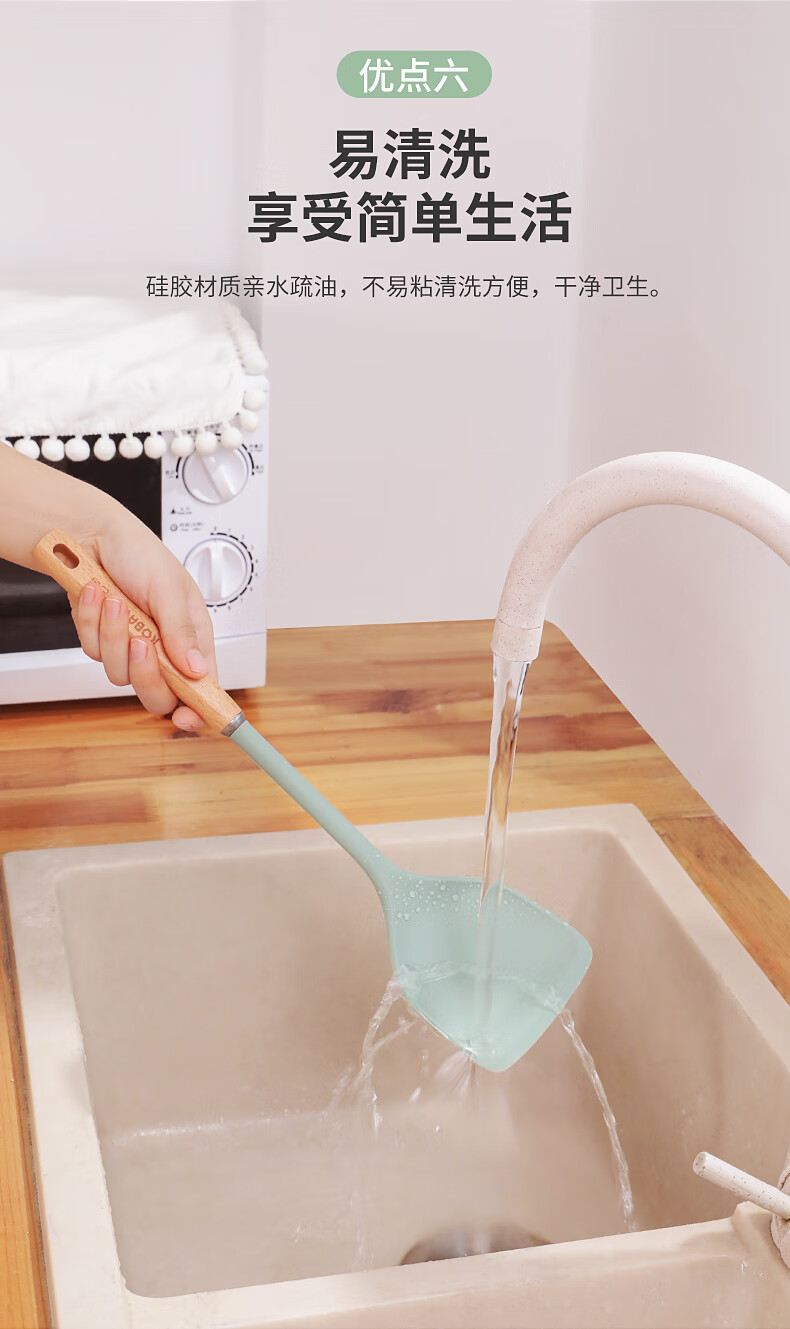 康巴赫 静厨防烫系列榉木硅胶锅铲 KSC-GC01 38*9.2cm 绿色(单位:个)
