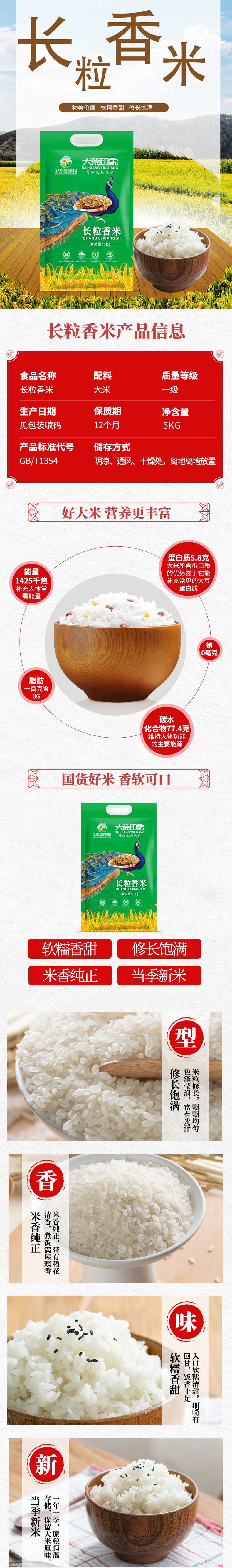大荒印象长粒香米5kg袋装(单位:袋) 松石绿