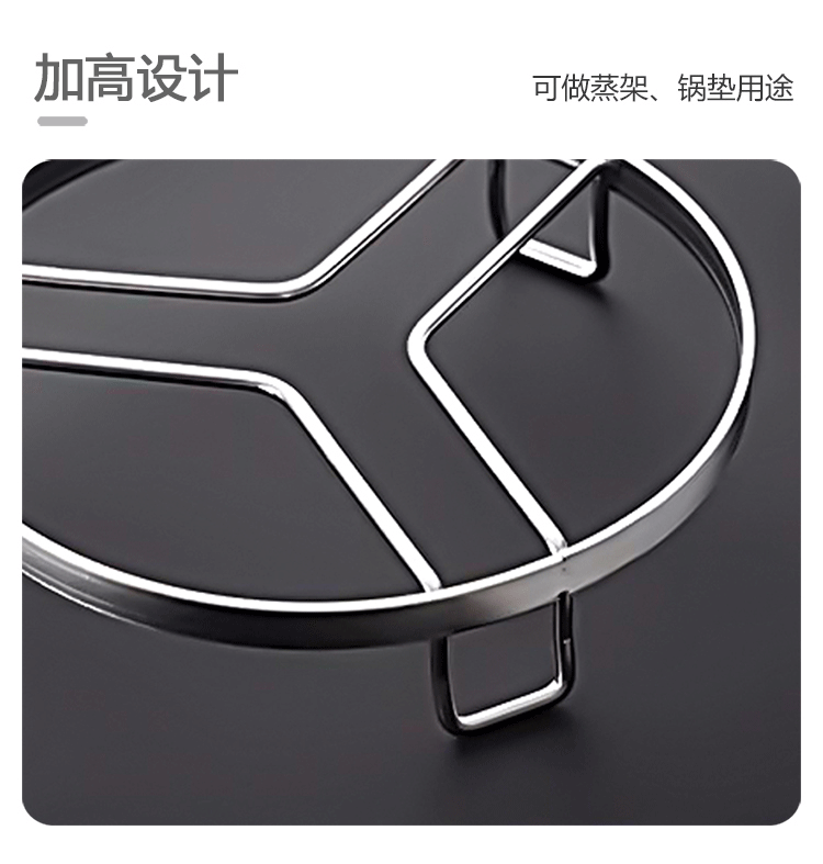 采用优质采用食品级304材质,一物多用,可做隔热垫、蒸架等等, 加宽边缘,更加稳固,产品简约时尚,方便收纳。