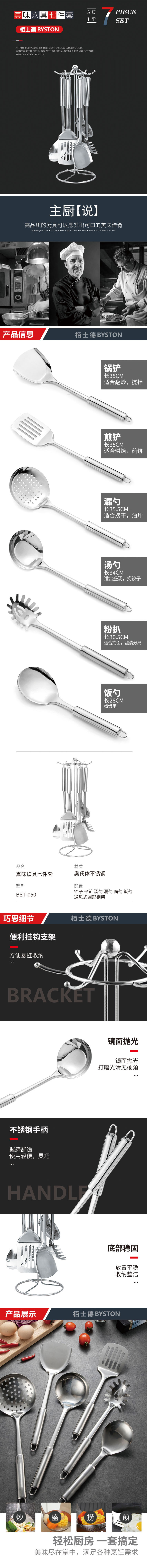 栢士德BYSTON 真味炊具七件套 BST-050 铲子+平铲+汤勺+漏勺+面勺+饭勺+钢架(单位:套)
