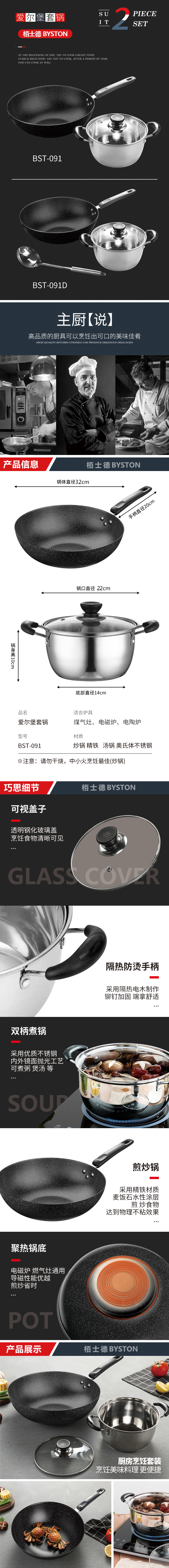 炒锅:采用高纯度精铁,锅身一体成型,导热快,易于翻炒和清洗,受热均匀,烹调食物更迅速,更节能环保;不粘内层,降低使食物烧焦和粘锅的可能;电木手柄设计,符合人体工程学原理,隔热防烫,牢固耐用,握感舒适; 汤锅:采用优质不锈钢材质,内外镜光,锅体不容易受损;复合底构造,受热更均匀,加热更快; 可用于电磁炉、煤气炉等多种热源。