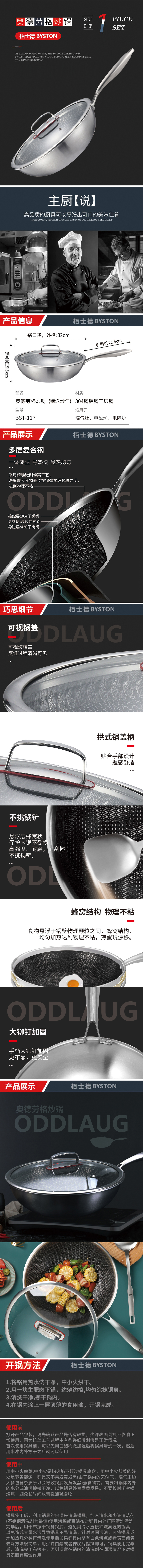 采用304钢铝钢三层通体压制工艺,健康无烟无涂层不粘锅,锅身一体成型;锅内采用精雕微刻蜂窝工艺,密度增大,不粘性能更强,食物悬浮在锅壁物理颗粒之间,在食物不直接接触锅底的情况下,均匀受热,导热快;易于翻炒和清洗,烹调食物更迅速,更节能环保;全透明钢化玻璃方便掌握 烹饪时间;手柄锅身采用超强重压铆钉工艺,不易脱落,承受能力强,烹饪更安全;锅沿人性卷边设计,杜绝汤汁流至锅底。不挑锅铲,耐用耐磨。