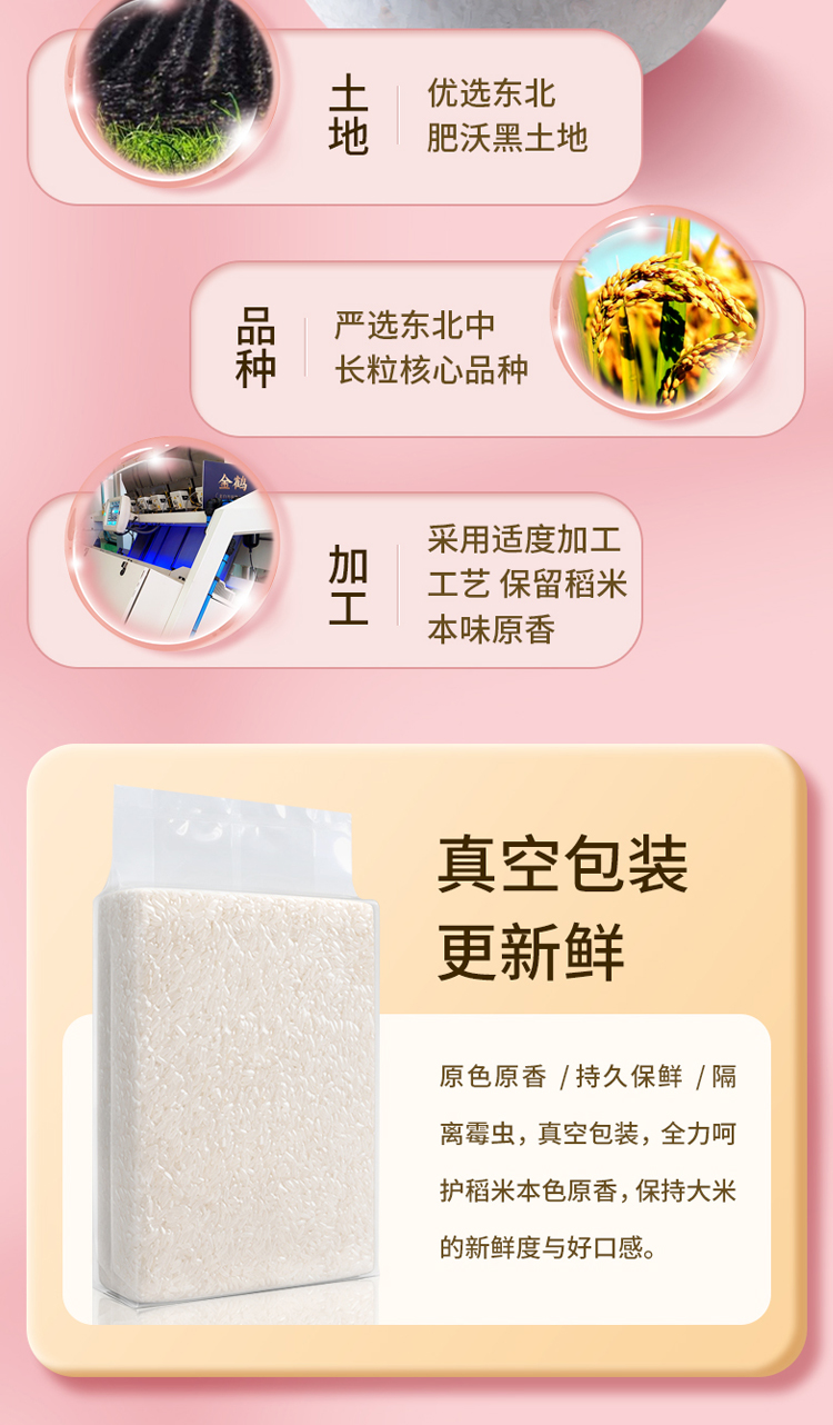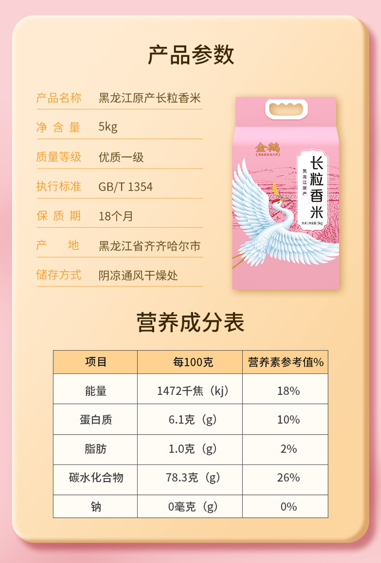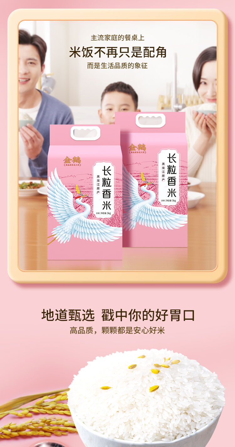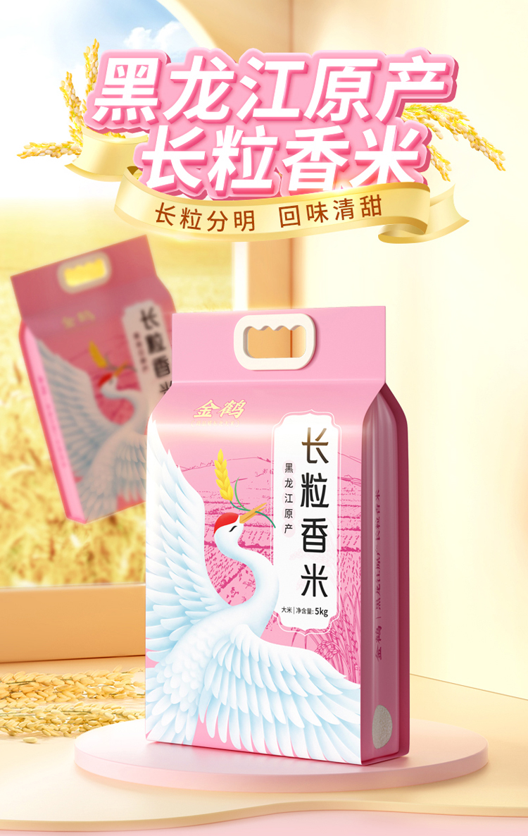 金鹤 黑龙江原产长粒香米(六面真空)大米5kg 单位:袋 粉色