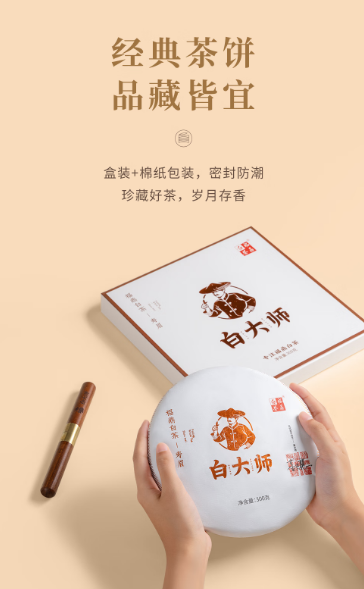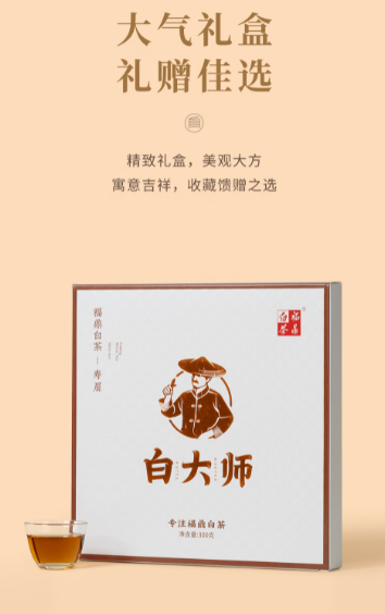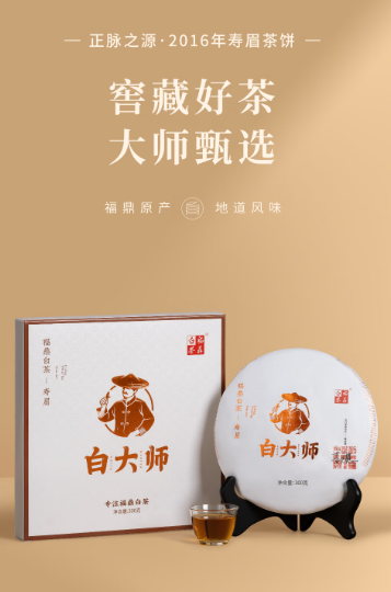 白大师 福鼎白茶2016年寿眉枣香茶饼礼盒装300g 白色