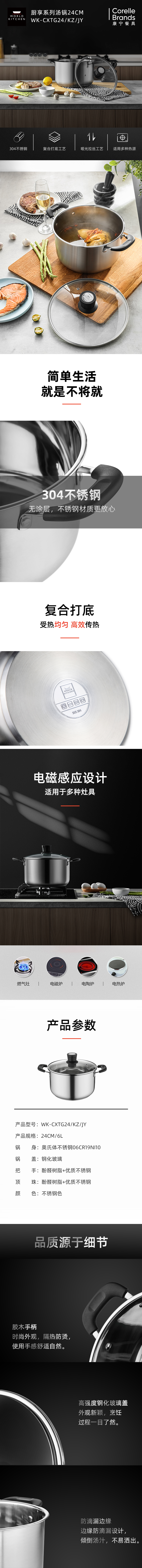 康宁餐具WORLD KITCHEN厨享系列汤锅24cm(单位:个) 不锈钢色