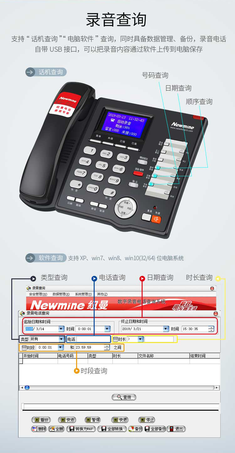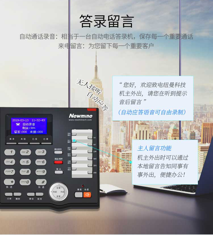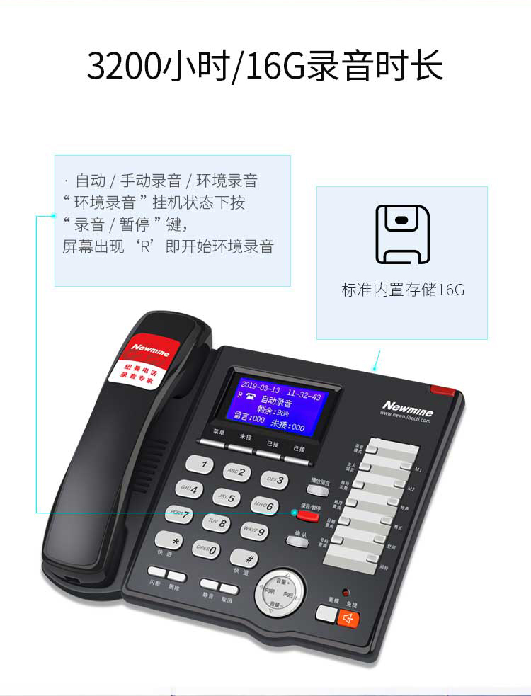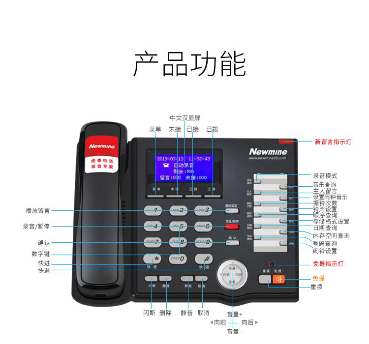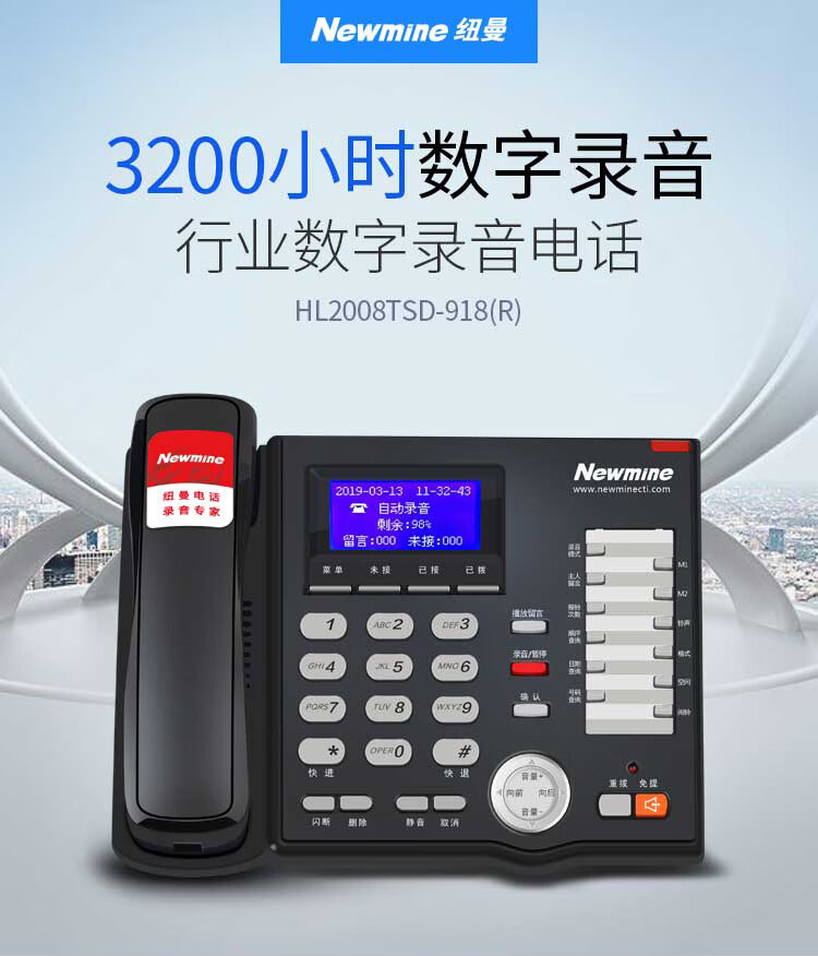 纽曼(Newmine)HL2008TSD-918(R)自动录音电话机单位:台 黑色