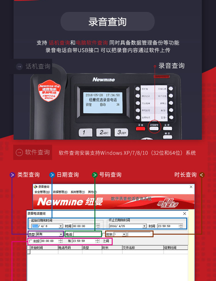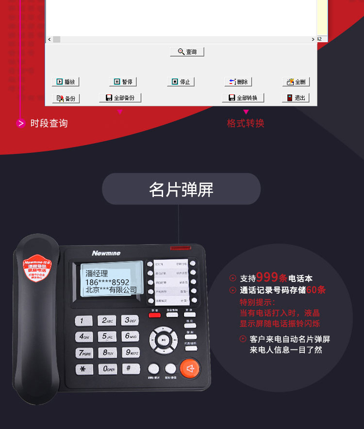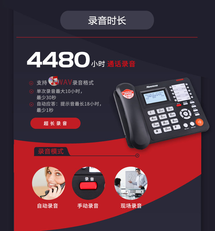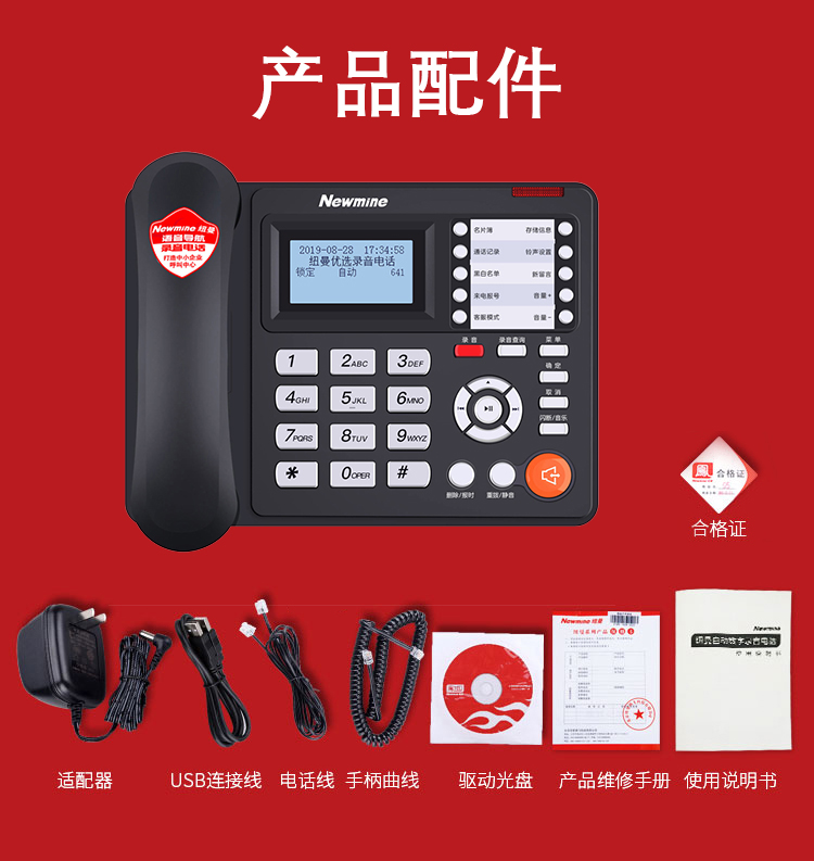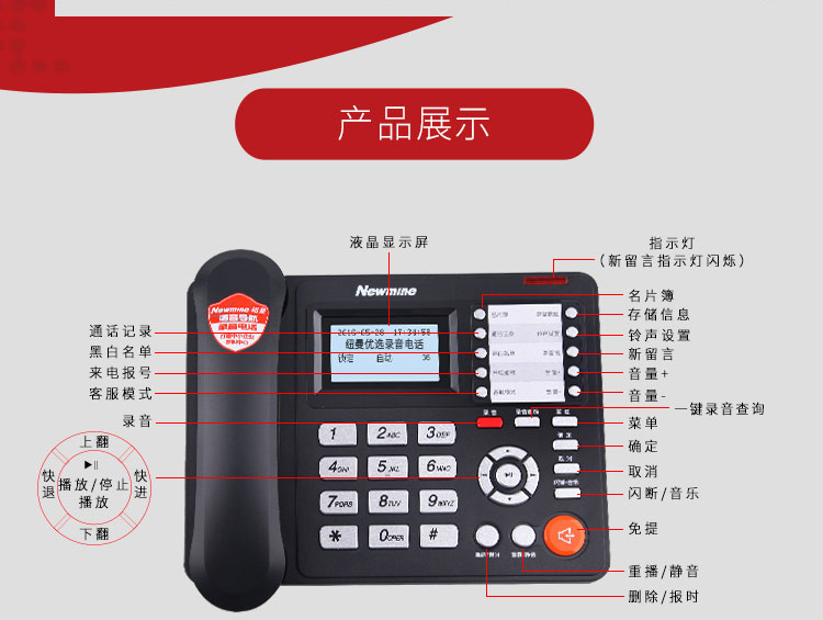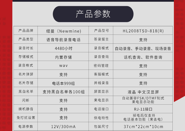 纽曼(Newmine)HL2008TSD-818(R)办公录音电话机座机单位:台 黑色