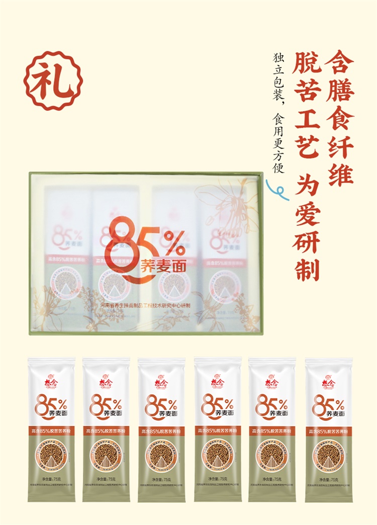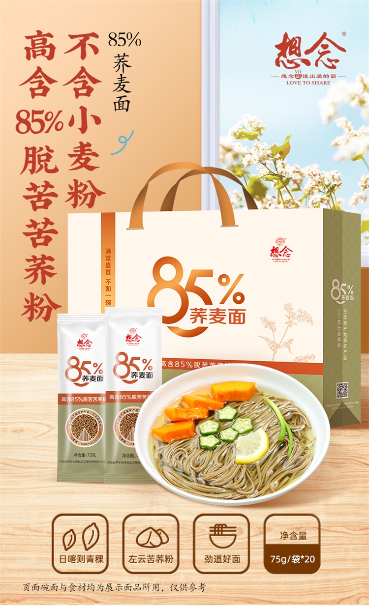 想念 礼盒装85%荞麦面1.5kg*1件 芥末黄