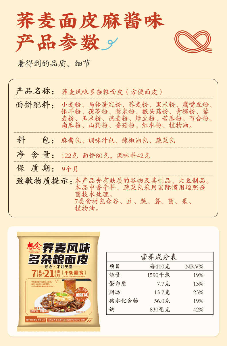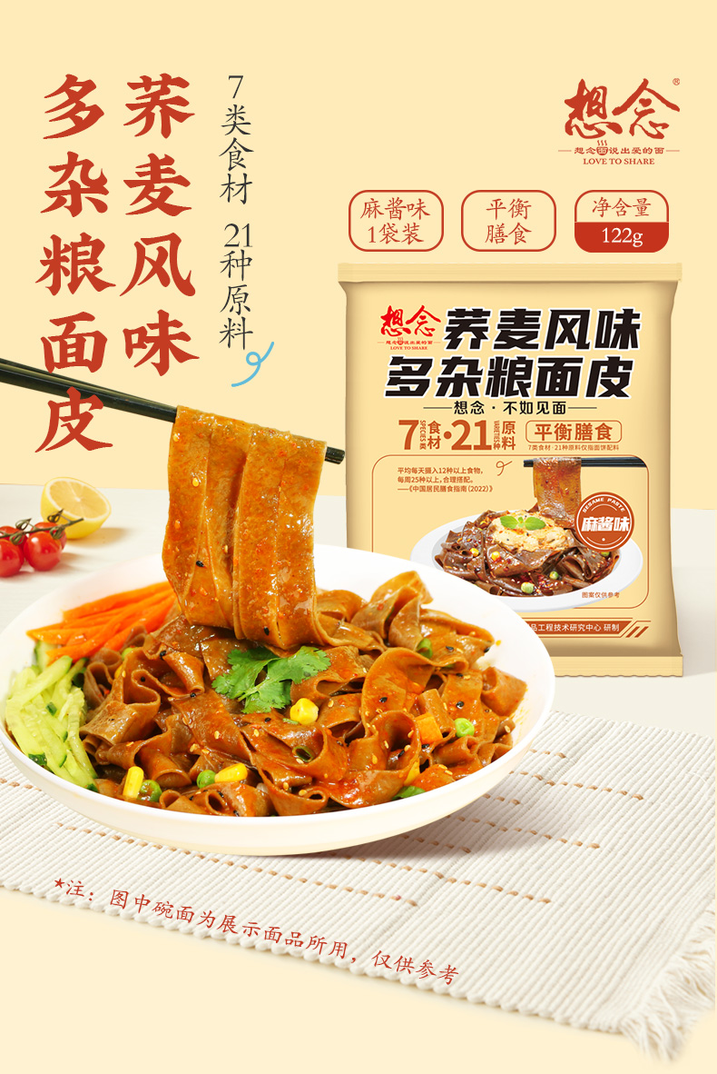 想念荞麦风味多杂粮面皮麻酱味122g*10袋 琥珀色
