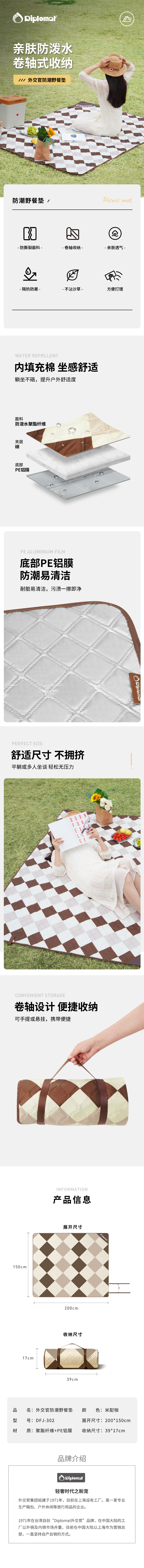 外交官防潮野餐垫-米配咖DFJ-302(单位:套) 米咖色