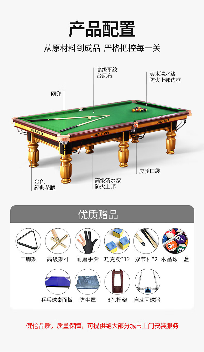 健伦(JEEANLEAN)JL-ZQT37 标准成人台球桌 家用台黑八美式桌球台中式顶配款 极光蓝