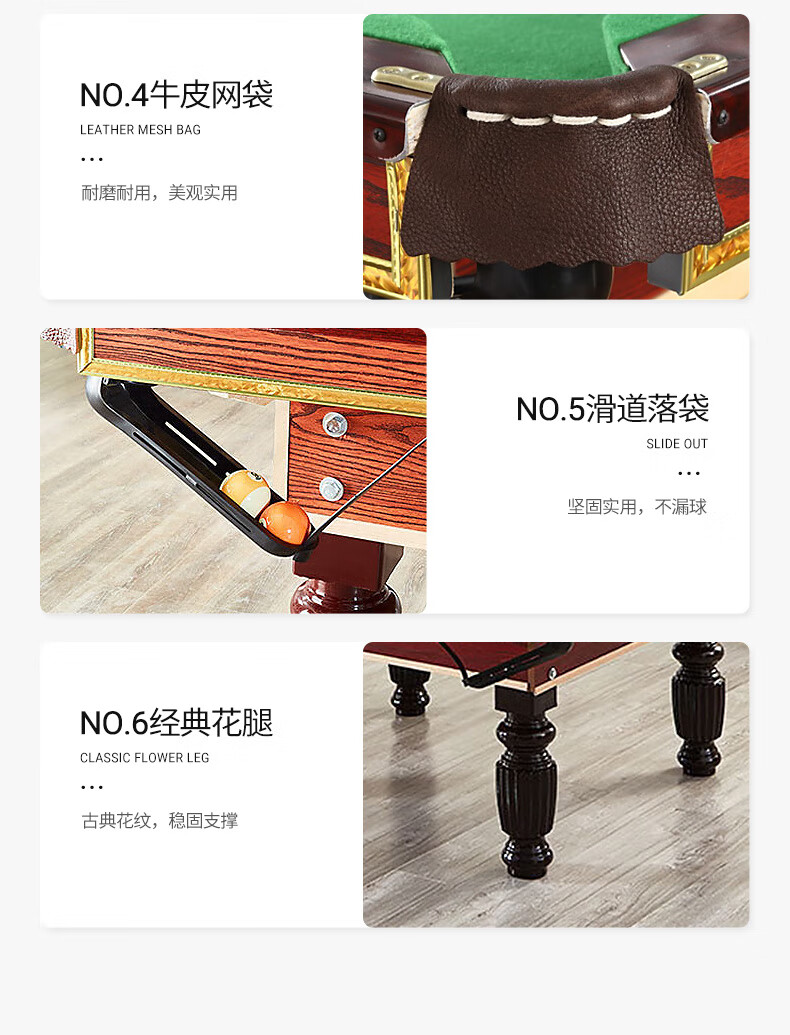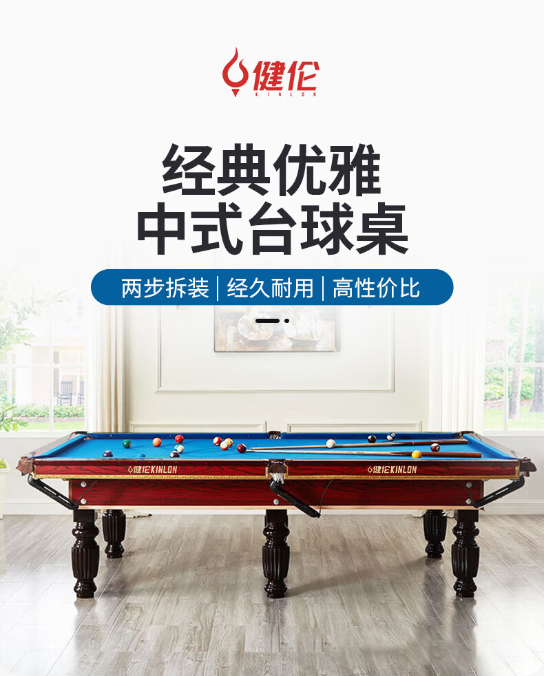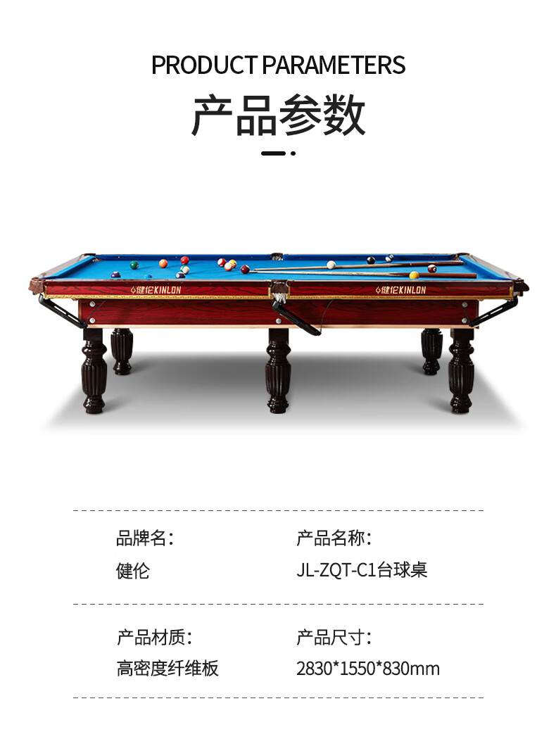 健伦(JEEANLEAN)JL-ZQT-C1S 台球桌高密度板 九尺家用高端美式黑八 宝石蓝