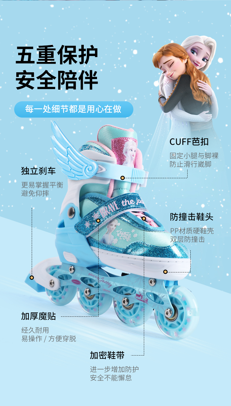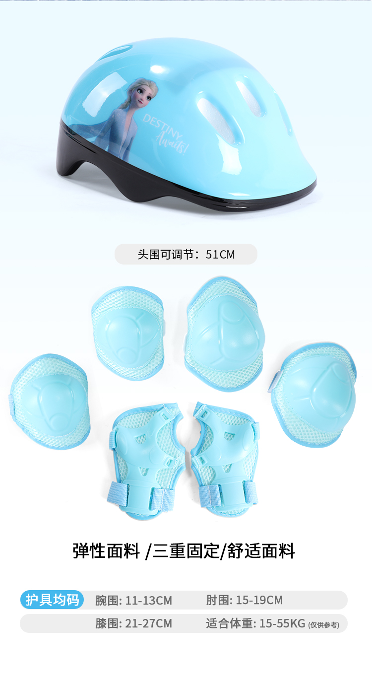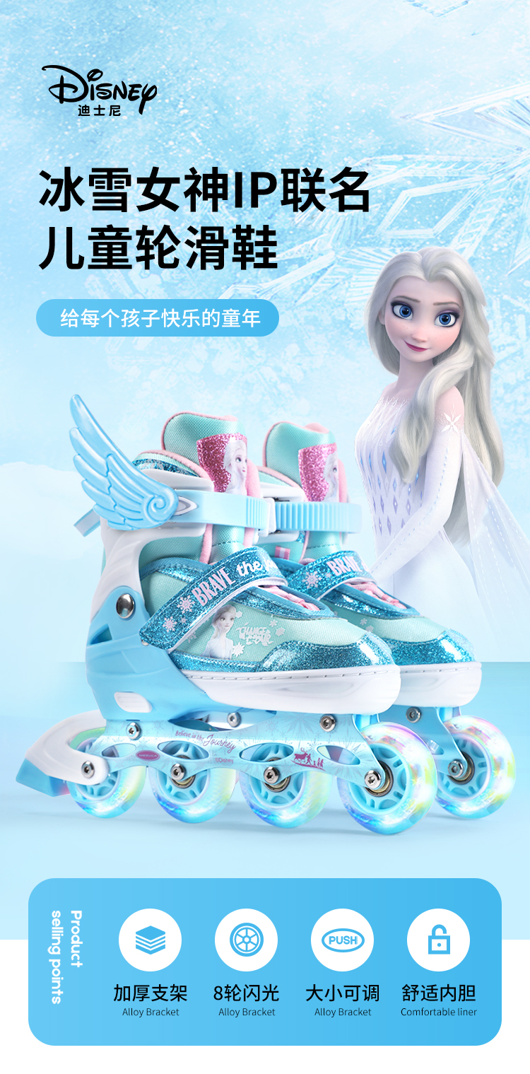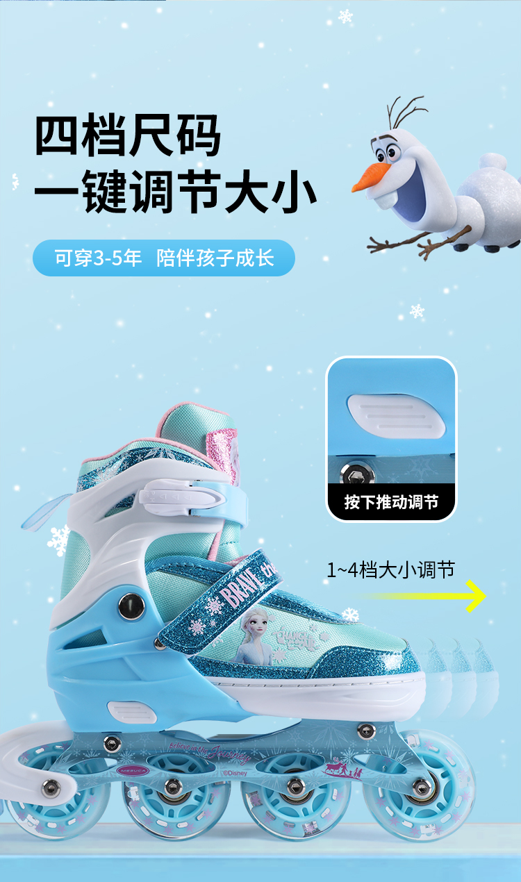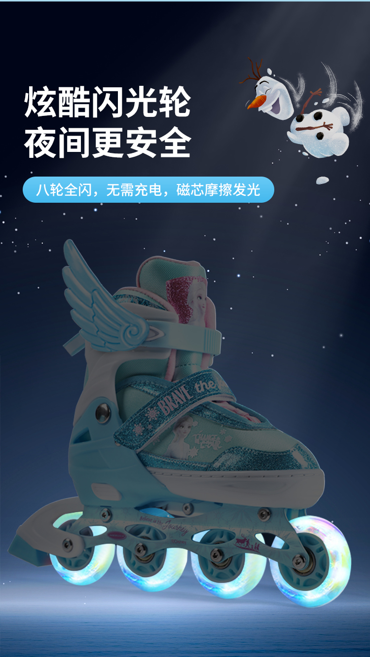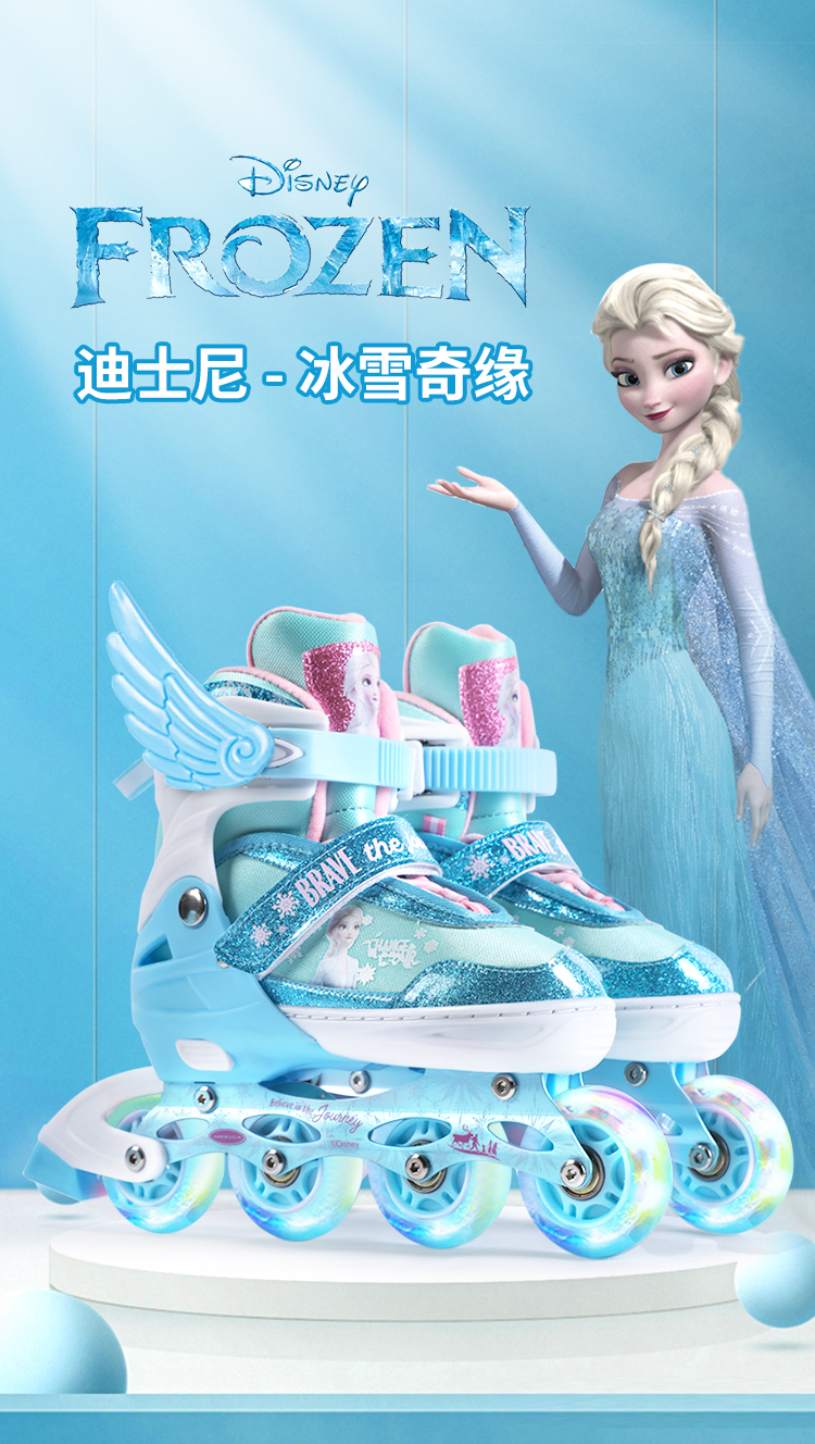 迪士尼DCB21570-Q迪士尼冰雪奇缘系列全闪轮滑鞋套装浅蓝31-34,35-38(单位:套) 天蓝色