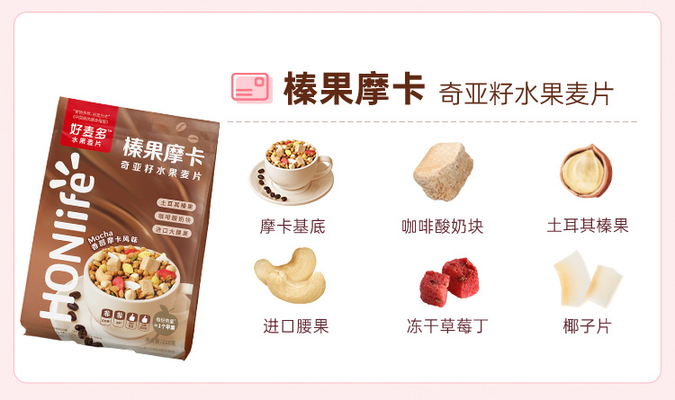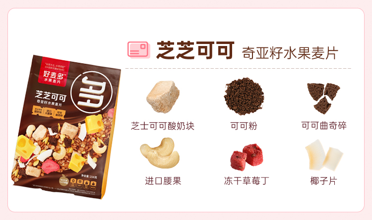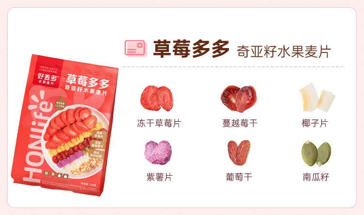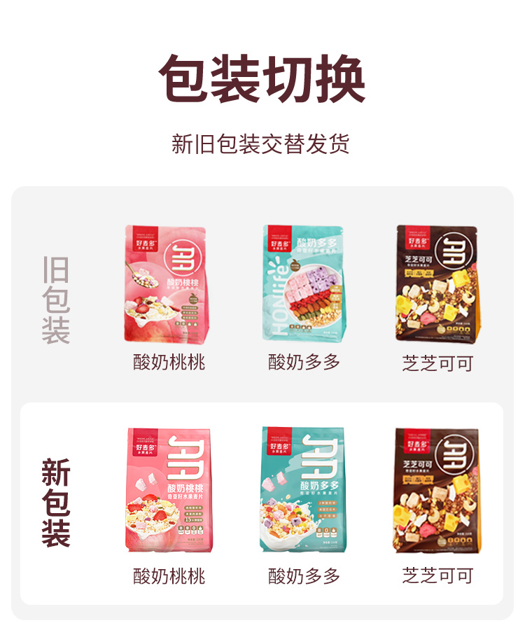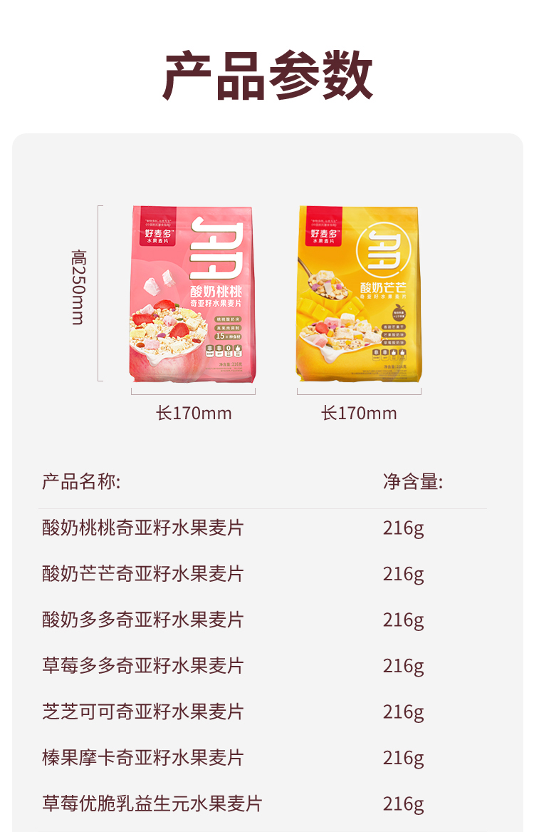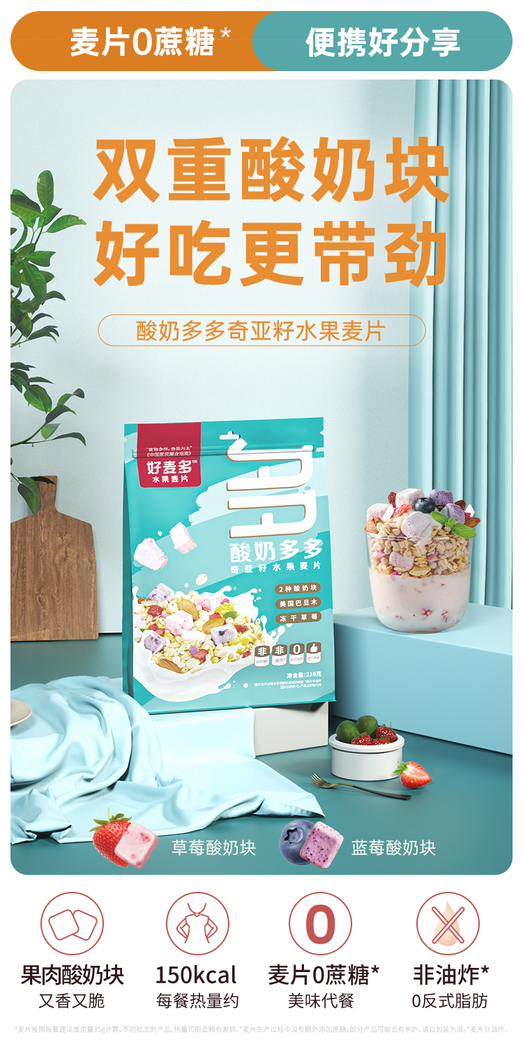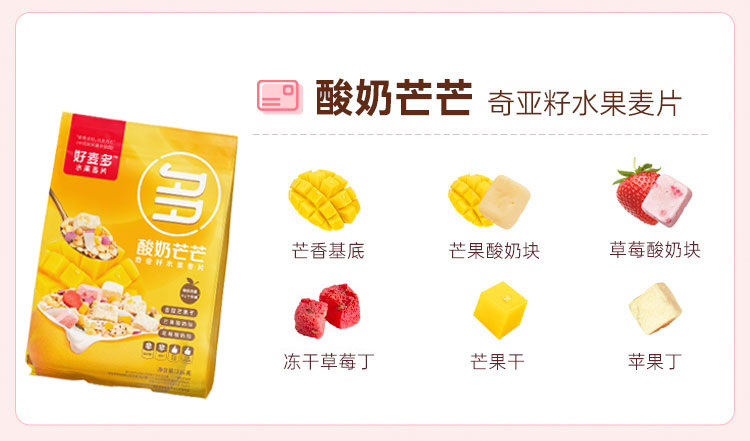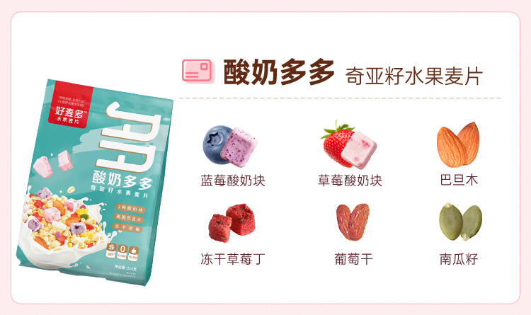好麦多 酸奶多多奇亚籽水果麦片216g轻卡早餐代餐拌酸奶更好吃(单位:袋) 极光色