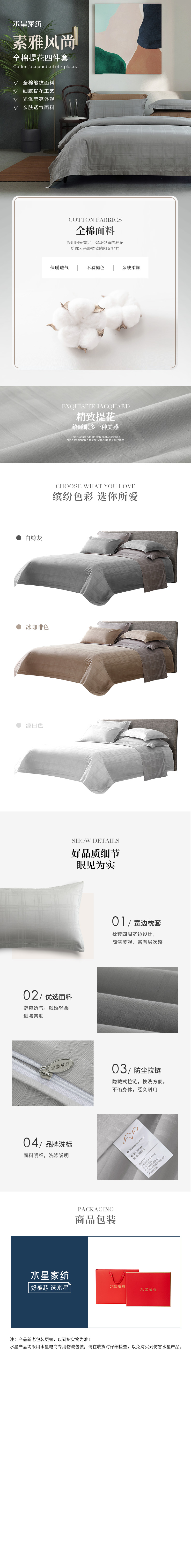 水星家纺 DH素雅风尚-S04(漂白色)缎纹全棉四件套 适用1.5米床/122992(单位:套) 白色