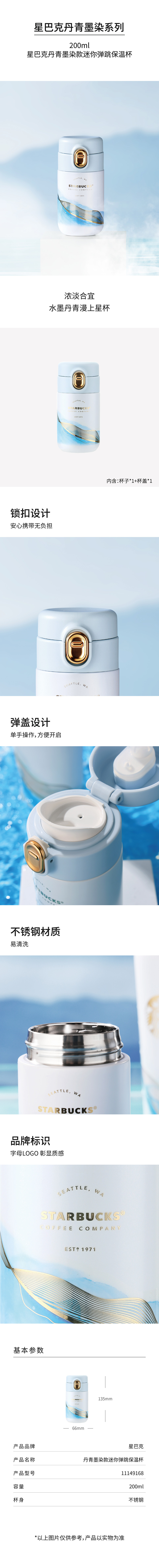 星巴克丹青墨染款迷你弹跳保温杯200ml(单位:个) 丹青色