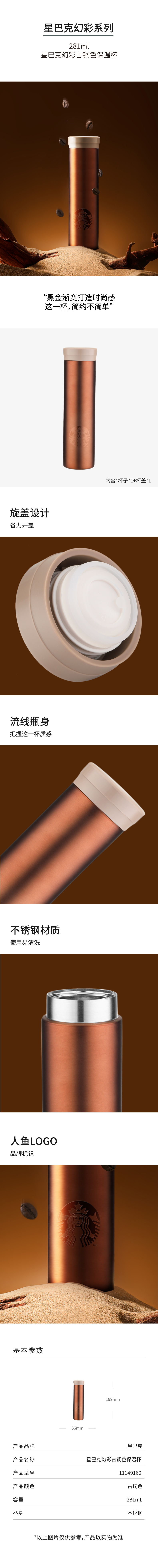 星巴克幻彩保温杯古铜色281ml(单位:个) 铜色