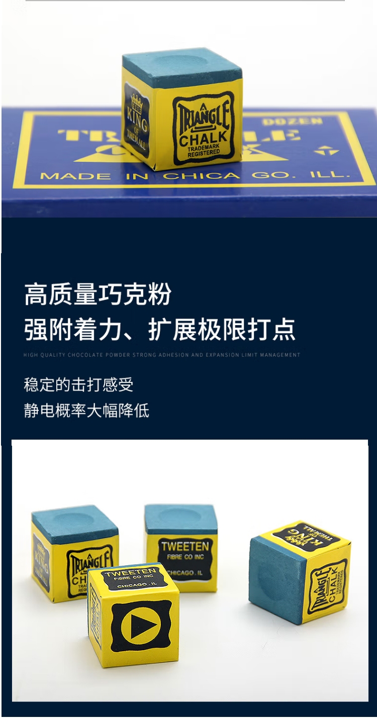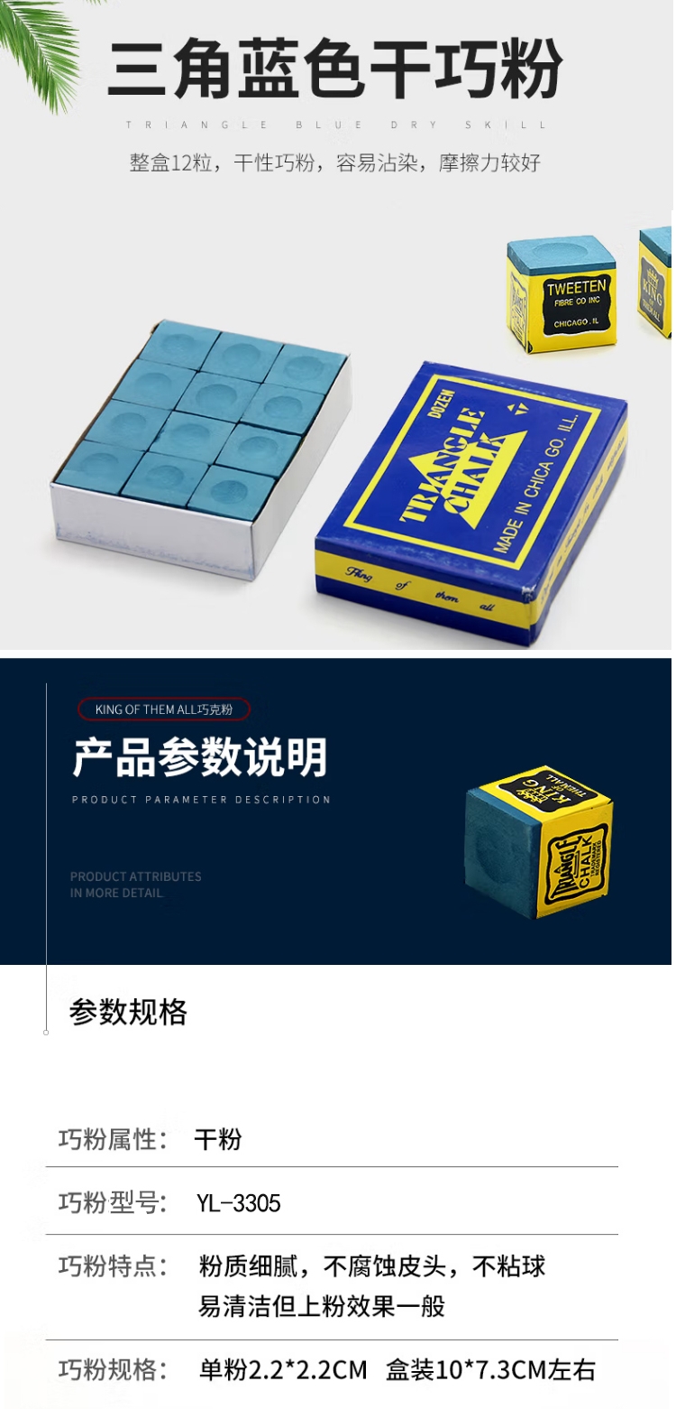 予力 YL-3305 巧克粉盒装(12个)三角蓝色台球粉美式黑八中式斯诺克粉