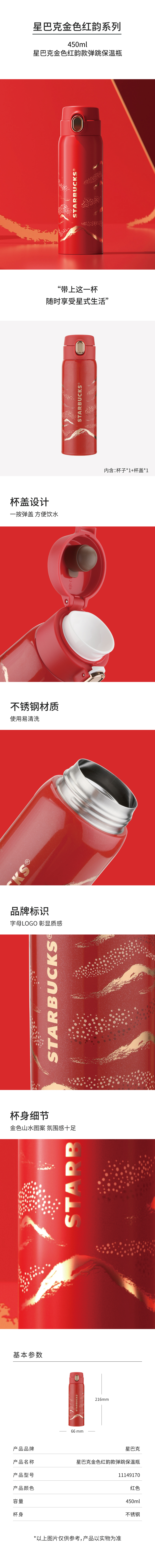 星巴克金色红韵款弹跳保温瓶450ml(单位:个) 夏日呢