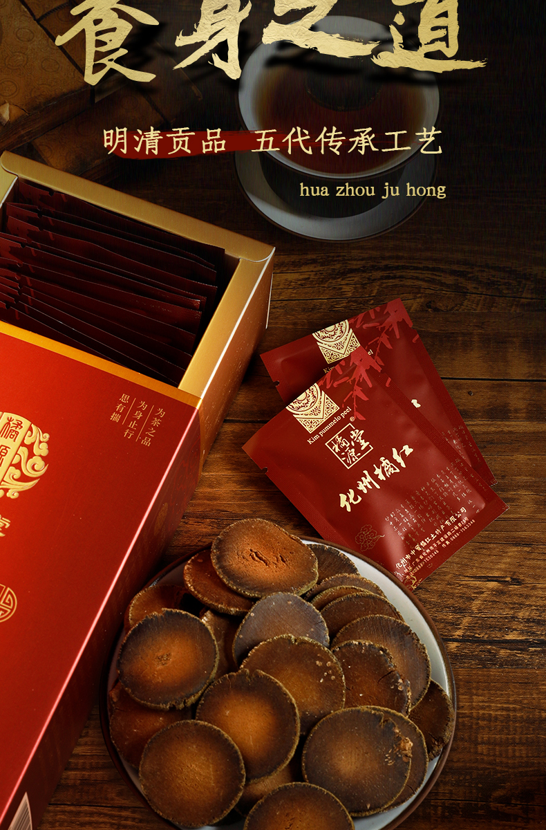 橘源堂化州橘红二十年陈片25包x2克/盒 红色