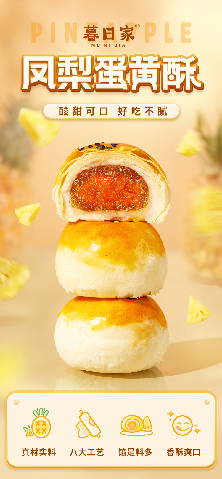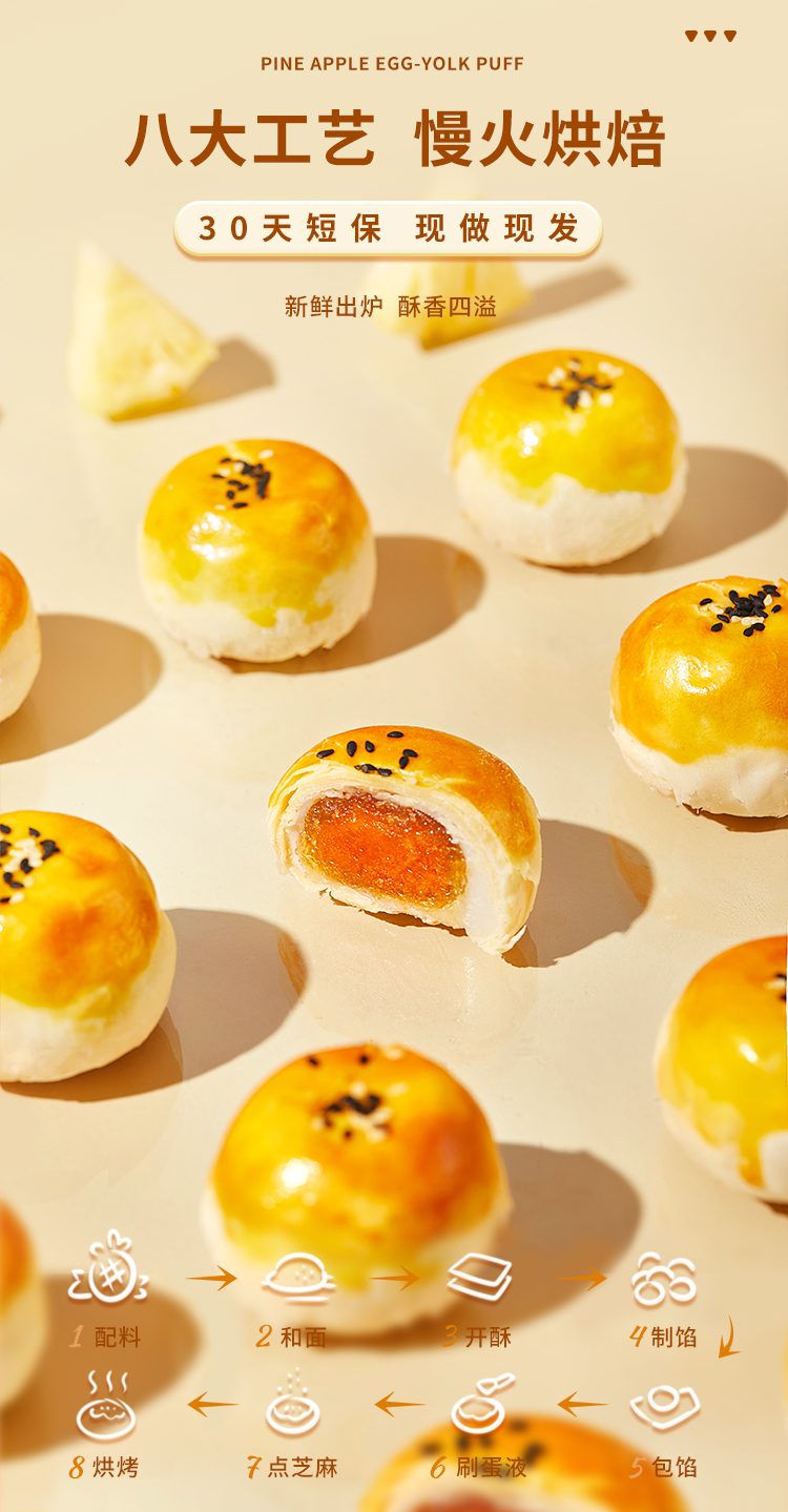 暮日家凤梨蛋黄酥45g*5枚新鲜现烤皮薄馅多水果味烘焙甜品点心儿童早餐 白色