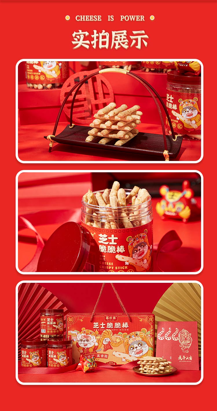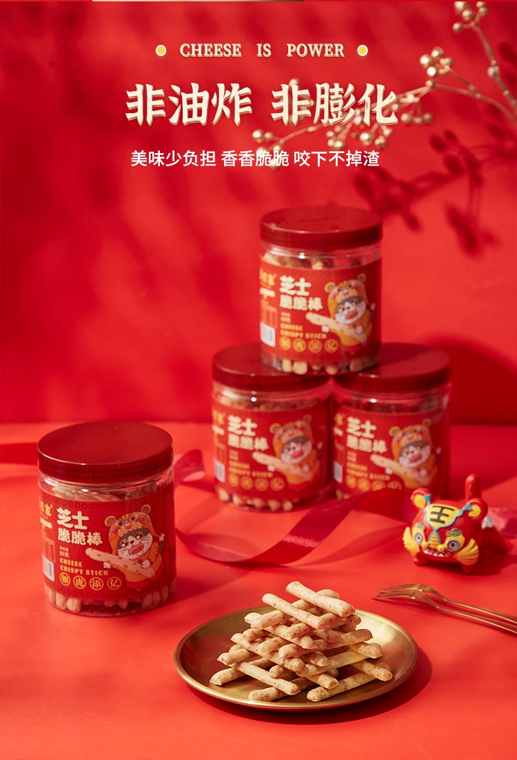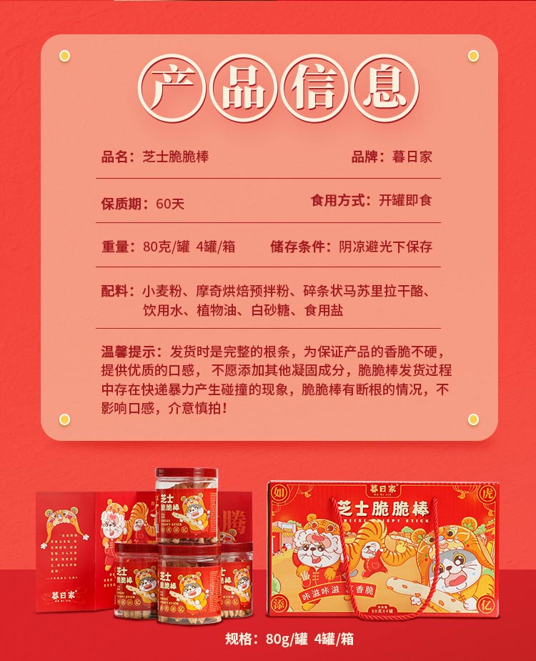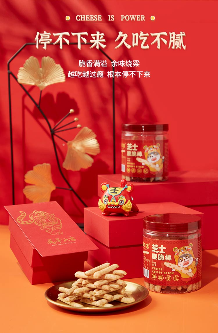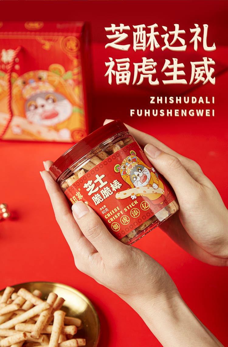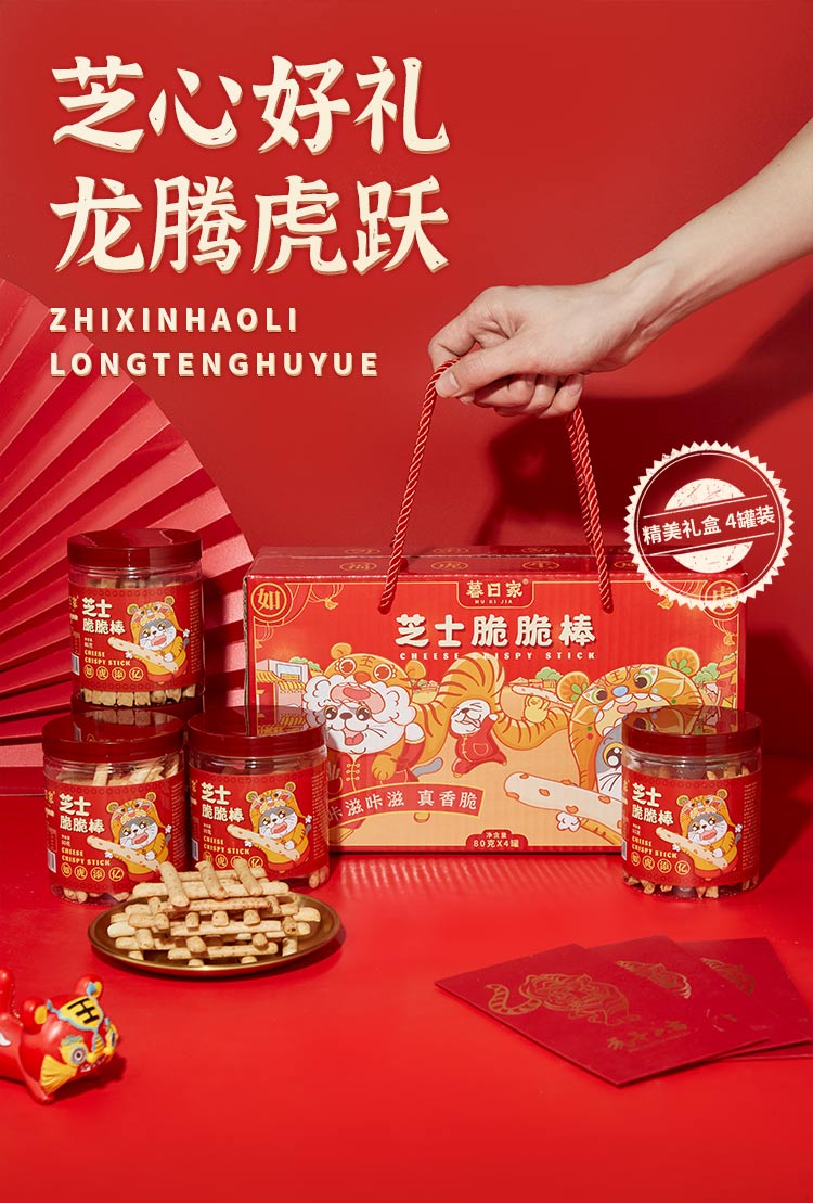 暮日家芝士脆脆棒饼干休闲零食80克*4罐过年礼盒大礼包节日福利送礼 拿铁色 80克*4罐