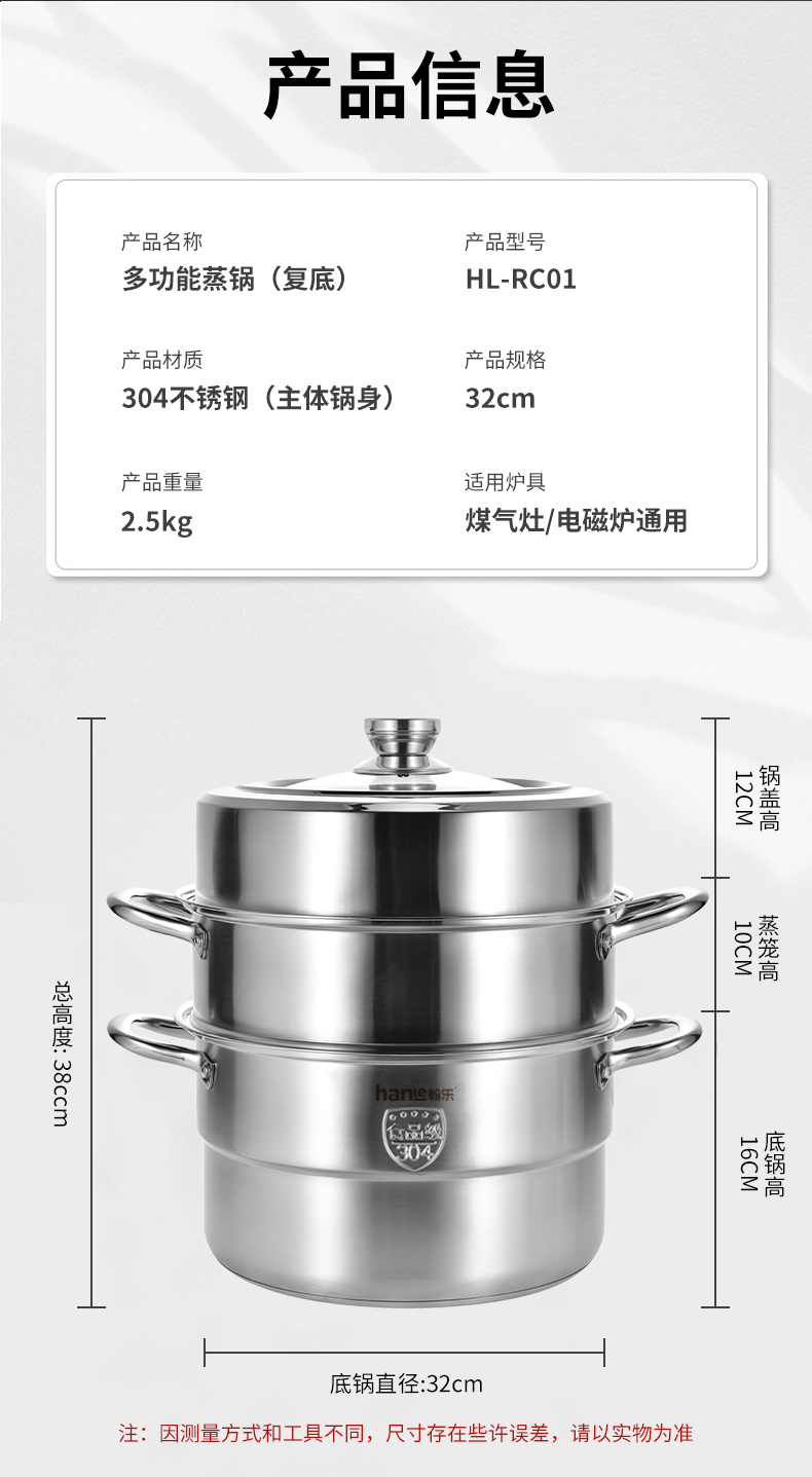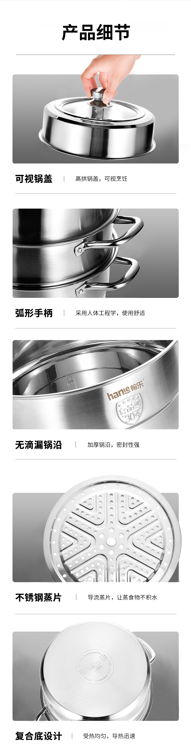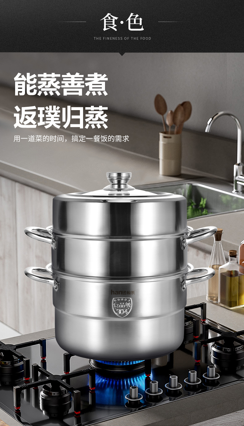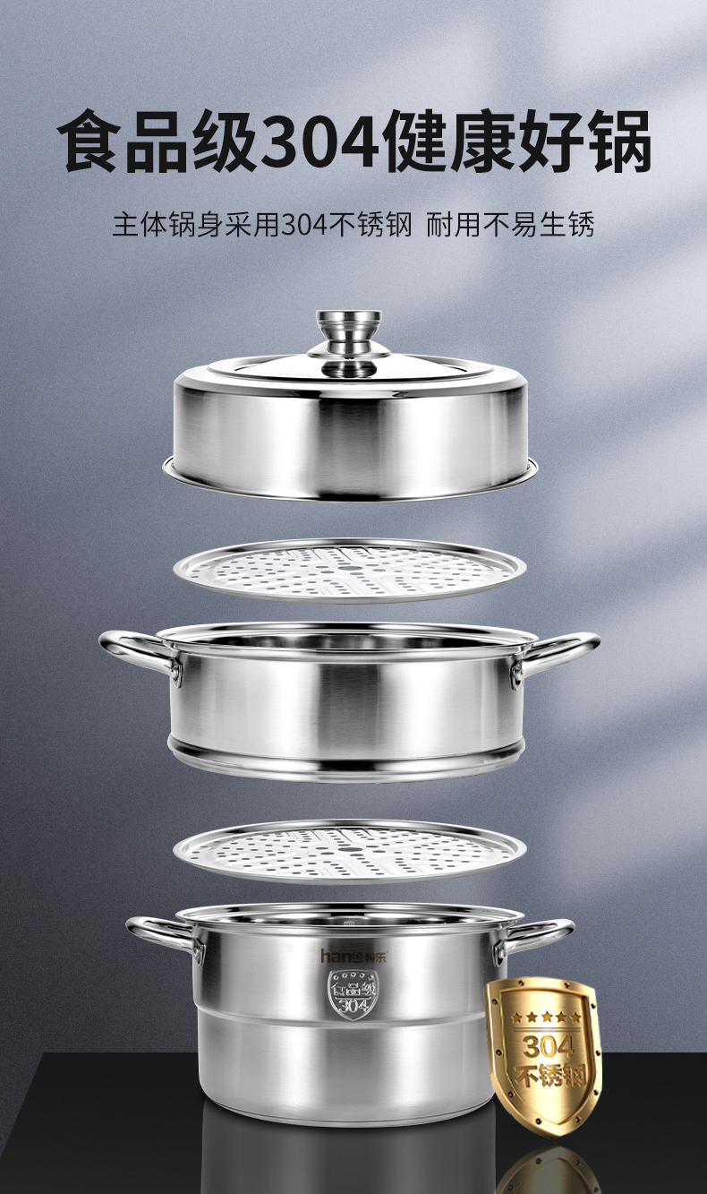 翰乐304食品级不锈钢蒸锅HL-RC01复合底(套)