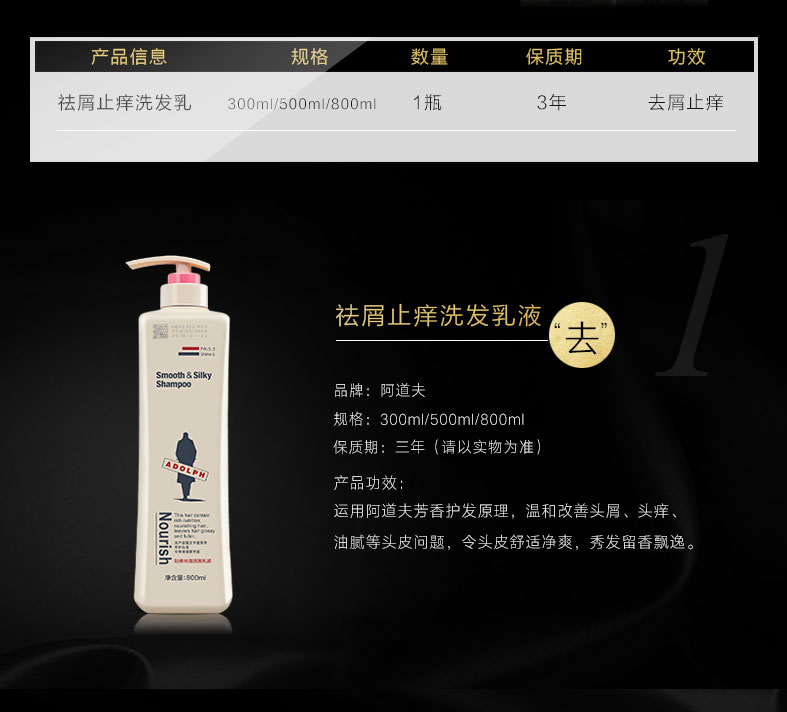 阿道夫祛屑止痒洗发乳液800g爱的味道持久留香 本白色 本白色
