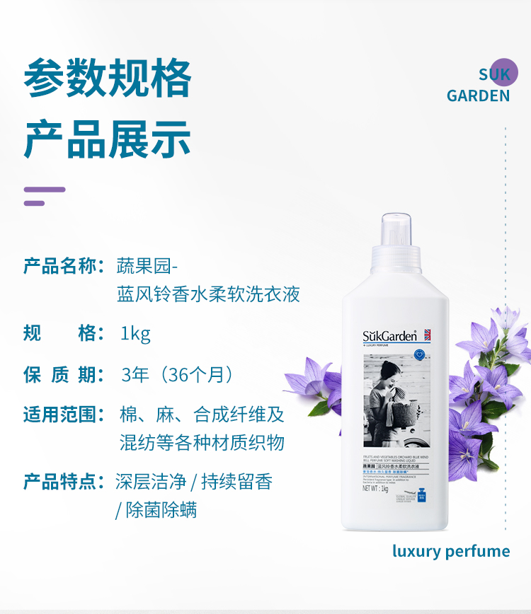 SukGarden蔬果园蓝风铃香水柔软洗衣液(持久留香型)(单位:瓶) SGY0116