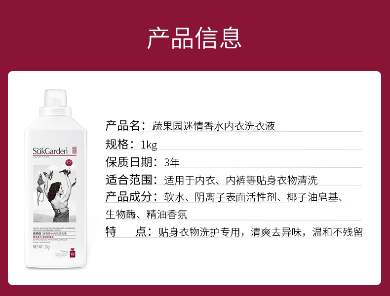 蔬果园(SukGarden) 迷情香水内衣洗衣液(雅致抗菌型)SGY0017(单位:瓶) 白色