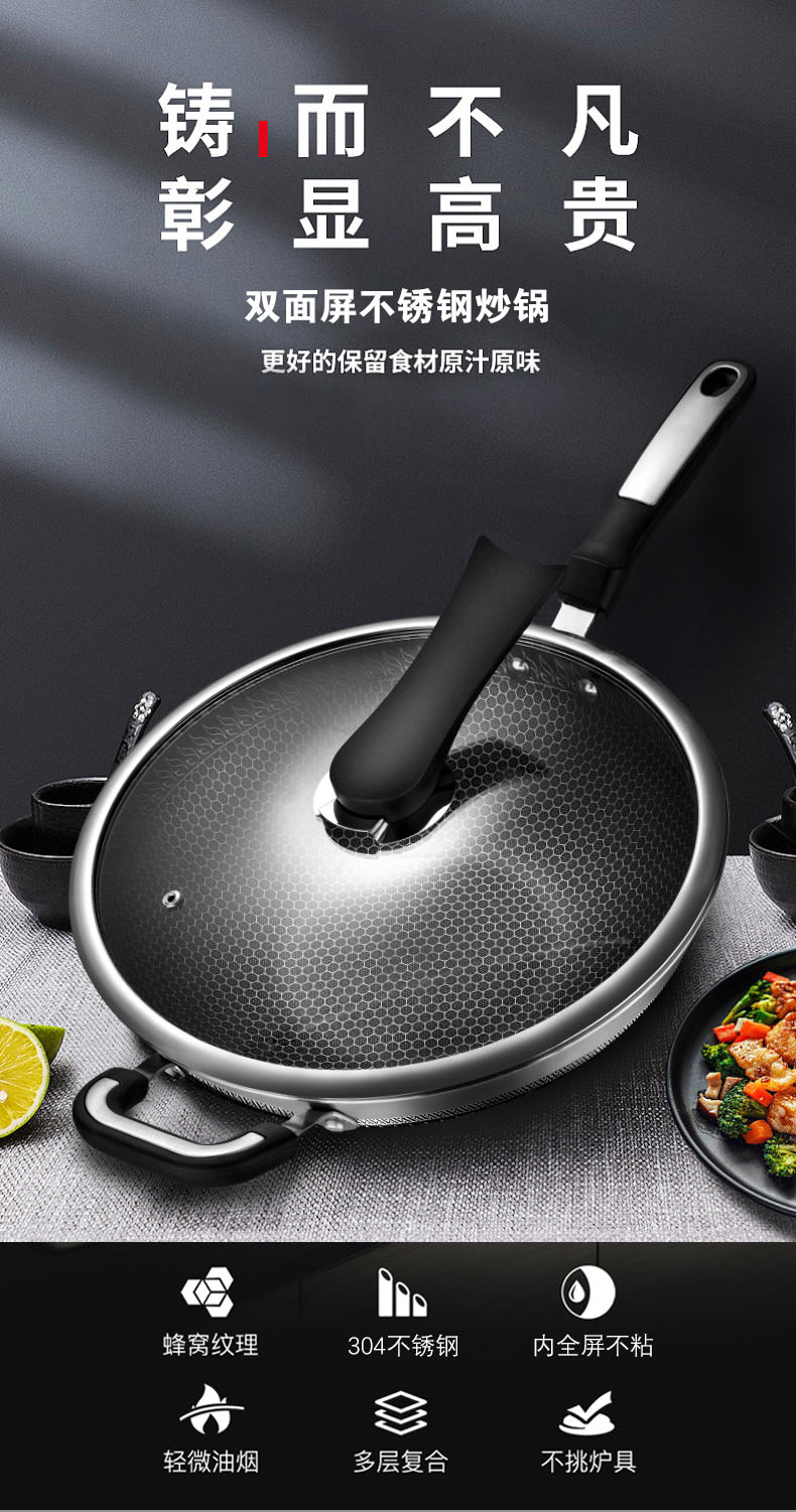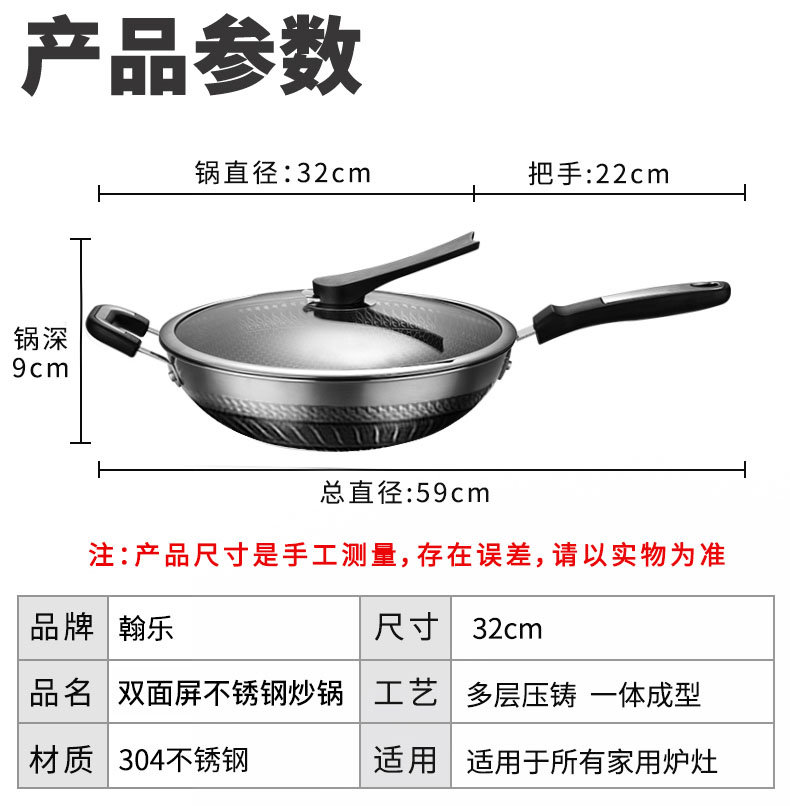 翰乐304双面浪花-HL-C33不锈钢炒锅32CM(套)