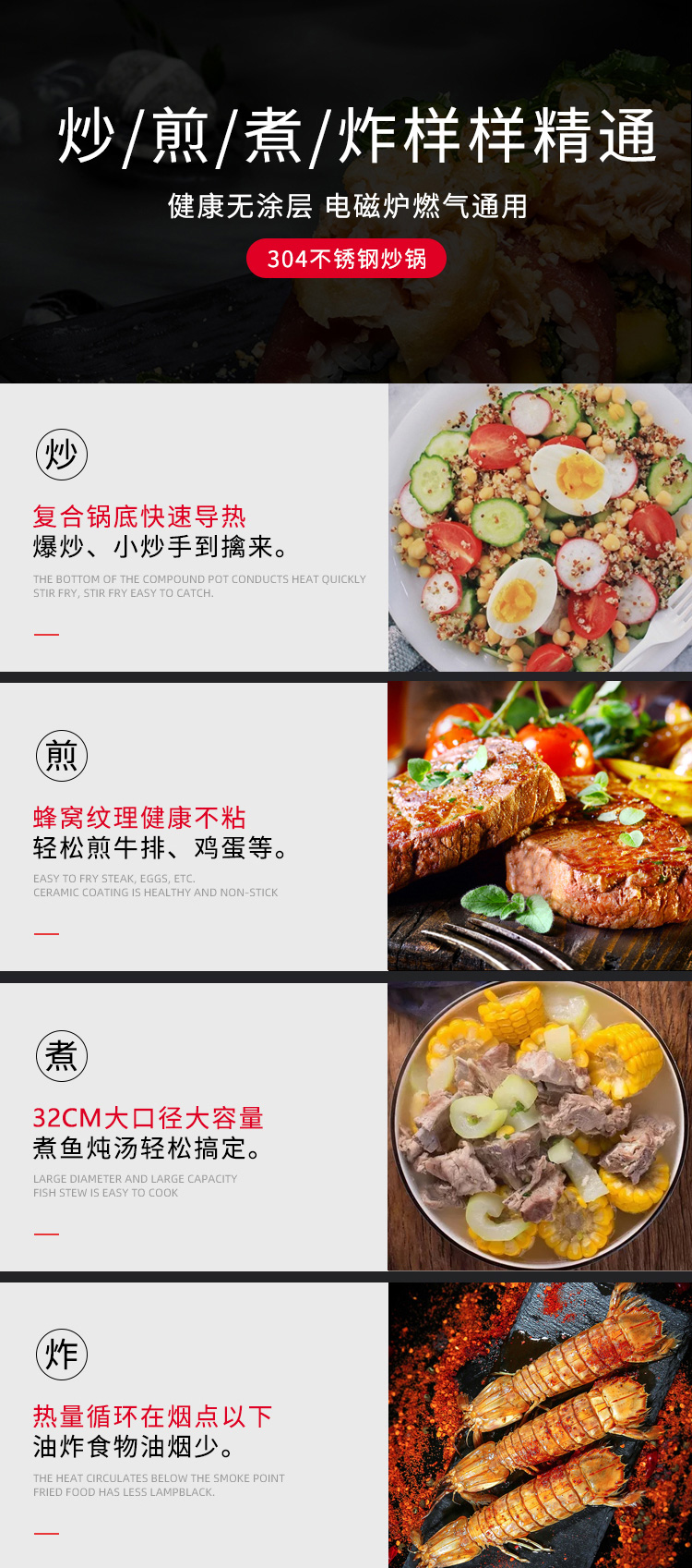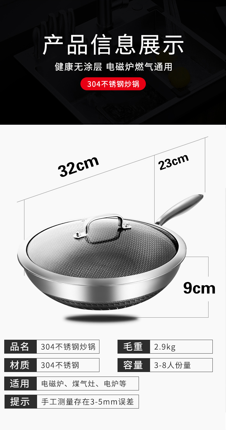翰乐 304不锈钢双面屏HL-C125不锈钢浪花蜂窝锅 32cm(套)